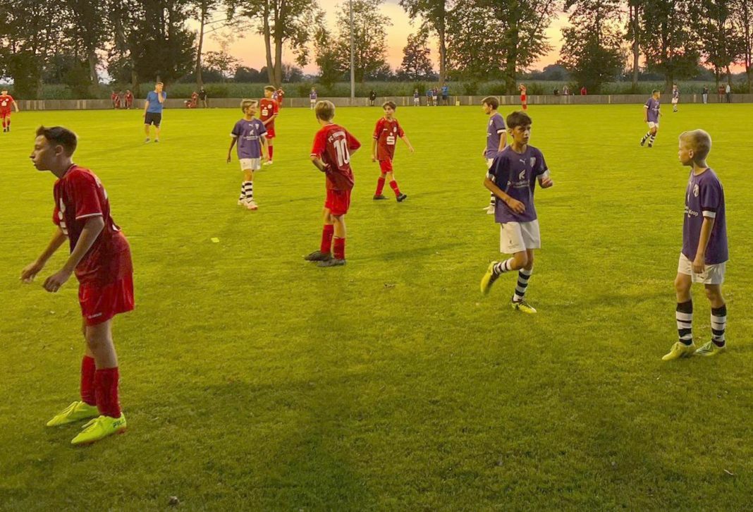 Nicht wie erhofft verlief der Punktspielauftakt für die C2-Junioren, denn am 1. Spieltag unterlag man bei der (SG) FC Fraunberg mit 0:3 und wartet auf die ersten Punkgewinne im neuen Jahr. Zunächst fanden die Altenerdinger Kicker ganz gut ins Spiel und konnten sich in den ersten Spielminuten durchaus gegen die durch die Bank älteren Kontrahenten durchsetzen. So ergab es sich in der fünften Spielminute, dass David Wildgruber durch einen sehenswerten Alleingang über linke Seite den Führungstreffer schon auf den Fuß hatte, doch der Fraunberger Schlussmann zeigte eine hervorragende Reaktion, pflückte den Torschuss aus der Luft und konnte so einen frühen Rückstand seines Teams verhindern. Drei Minuten später überlief der großgewachsene Stürmer der Gastgeber auf der rechten Seite jedoch die Semptstädter Abwehrkette und lochte mit einem Vollspann-Schuss ins lange Eck zum 1:0 für die Hausherren ein. In den folgenden Spielminuten sahen die Zuschauer weiterhin eine Partie auf Augenhöhe, mit Torchancen auf beiden Seiten. Aber wenig später fing man sich doch den zweiten Gegentreffer ein. Erneut konnte die linke Abwehrseite der SpVgg den Vorstoß eines Angreifers der FCF nicht unterbinden und wie schon beim 0:1 landete das Leder zum 0:2-Pausenstand im langen Eck des Altenerdinger Tores. Nach Wiederbeginn wollte man der Partie dann eine Wende verleihen, doch der Vorsatz erfuhr schon nach wenigen Minuten einen jähen Rückschlag. Man eröffnete den zweiten Durchgang mit einem missglückten Anstoß, der direkt bestraft wurde. Sofort musste man das Spielgerät an die Gastgeber, die sich mit lediglich drei Spielzügen vor das Altenerdinger Tor kombinierten und dort mit dem Treffer zum 3:0 einen erfolgreichen Abschluss fanden. In der Schlußphase bäumten sich die Veilchen nochmal auf, zeigten durchaus sehenswerte Kombinationen, die leider keinen zählbaren Erfolg zu Tage brachten. Das Trainerduo Oliver Heidler und Oliver Pompei lobten dennoch die Leistung der C2-Recken, die ihr ersten Punktspiel auf dem Großfeld spielerisch gut gelöst haben. Die noch fehlende Kondition und Zweikampfhärte sollten sich in den nächsten Wochen einstellen, so dass man trotz der Auftaktniederlage zuversichtlich in die kommende Saison blickt.