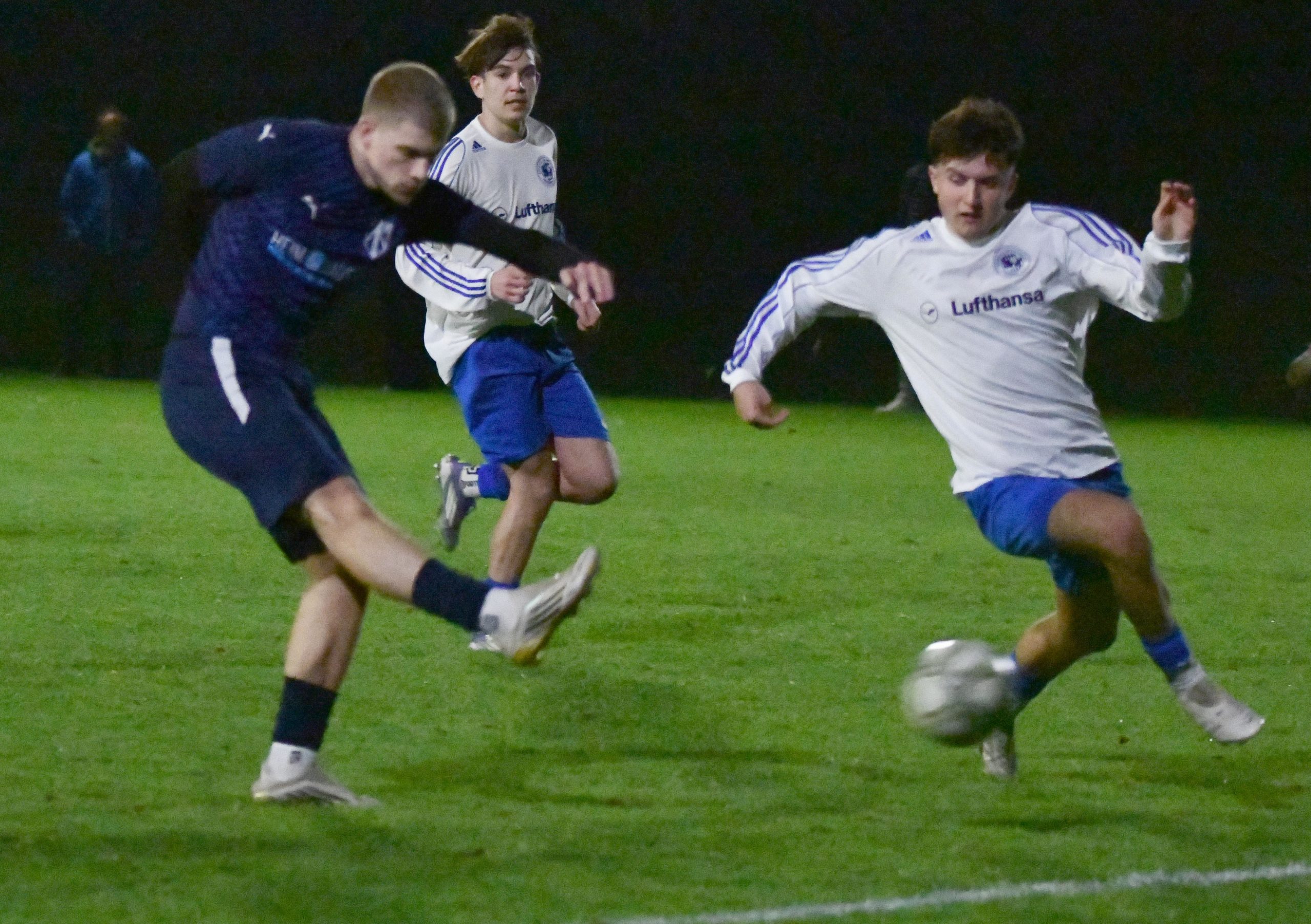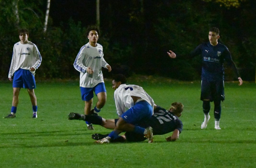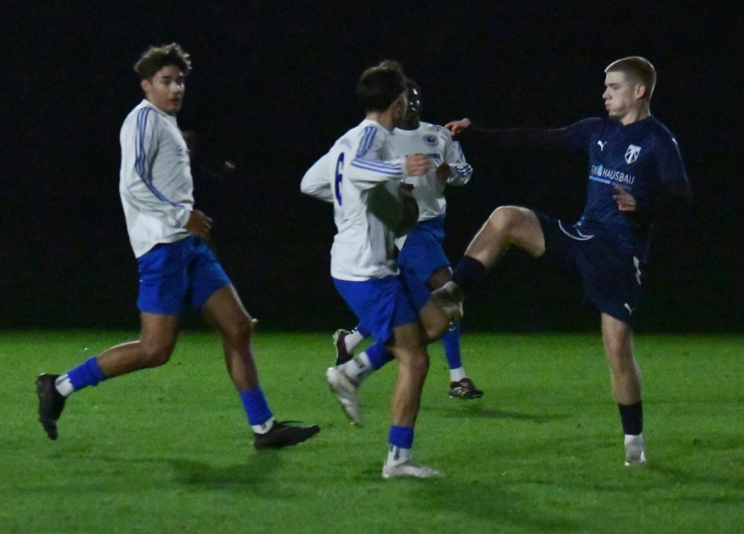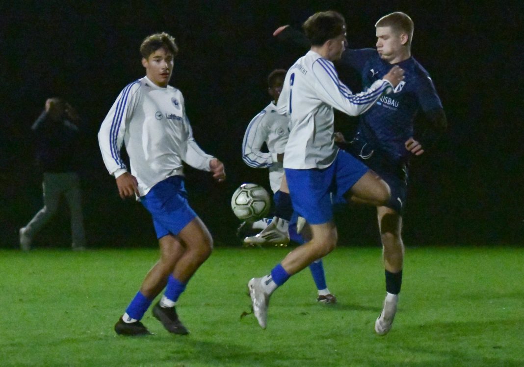 Eine sehr gute Reaktion zeigten die A1-Junioren der SpVgg nach der deutlichen 1:6-Niederlage beim TSV Eching, denn die Veilchen präsentierten sich im Vergleich gegen den SE Freising II mit einem deutlich anderem Gesicht. Letztlich hätte man sich sogar mehr als das 3:3-Remis verdient gehabt, denn nach einer guten zweiten Hälfte lag sogar ein dreifacher Punktgewinn im Bereich des Möglichen. Der Heimelf, die abermals mit Spielern aus dem Herrenbereich, aber auch mit Verstärkungen von den B1-Junioren bestückt war, war anzumerken, dass man noch nie in dieser Formation zusammengespielt hat, so dass die Domstädter anfangs das Zepter in die Hand nahmen. Schon nach zwei Minuten kombinierten sich die Gäste schnell nach vorne und als ein Angreifer dann im Strafraum zum Abschluss kam, drohte erneut ein früher Rückstand, doch Keeper Senal de Silva tauchte ab und konnte den Flachschuss parieren. Wenig später wurde dem SEF dann auf der linken Seite knapp außerhalb des Strafraumes ein Freistoß zugesprochen, der direkt scharf auf das Tor getreten wurde, doch erneut war der Altenerdinger Schlussmann zur Stelle und klärte per Fußabwehr. Die Schützlinge des Trainerduos Patrick Hahn und Richard Kulterer zeigten sich in Sachen Chancenauswertung anfangs effektiver, denn nach 15 Minuten führte der erste Abschluss zum Führungstreffer. Nach einem schönen Angriff durch das Zentrum steckte Emilio Polsfuss das Leder schön durch die Schnittstelle und fand Elias Veladzic, der ohne lange zu fackeln abzog, und das Spielgerät unhaltbar im Netz versenkte. Doch der Vorsprung hielt nicht lange, denn schon drei Minuten später kam der SEF zum Gleichstand. Nach einem langen Ball auf die linke Seite kam es zum Zweikampf zwischen einem Freisinger Flügelstürmer und Abwehrspieler Kubilay Uluhan. Als der Stürmer in den Strafraum eindrang, schien Uluhan das Leder schon zu haben. Da er jedoch die Situation spielerisch lösen wollte, kam sein Gegenspieler doch wieder an den Ball, den er dann in den Rücken der Abwehr legte, wo sein Mitspieler aus 14 Metern unhaltbar für de Silva „einnetzte“. Nach 25 Minuten bot sich dann der Heimelf wieder eine gute Möglichkeit: Als ein Ball nach vorne geschlagen wurde, verfehlte der letzte Gästeabwehrspieler die Kugel, so dass Veladzic fast frei auf das Tor hätte zulaufen können. Allerdings sprang der Ball unglücklich hoch, so dass der Angreifer sein Tempo verlangsamen musste. Zwar kam er dann gegen zwei Gegenspieler noch zum Abschluss, doch der Keeper der Domstädter konnte den Schuss parieren. Die Schlussphase der ersten Hälfte gehörte dann wieder den Gästen, die nun mehr vom Spiel hatten, während die SpVgg nur noch sporadisch nach vorne kam. Allerdings stand die Defensive der Gastgeber sehr gut. Zwar kam der Gast immer wieder aussichtsreich in den Strafraum, doch beim letzten Pass bzw. bei den Abschlüssen fehlte die Genauigkeit, so dass man mit einem Remis die Pause ging. Die zweite Hälfte benötigte dann eine kurze Anlaufzeit, doch diesmal nutzten die Gäste die erste Chance zum Führungstreffer. Nach einem Ballverlust landete das Leder bei einem auf der linken Seite stehenden Angreifer. Als er von Niklas Langer nicht kompromisslos attackiert wurde, sah er, dass der Altenerdinger Schlussmann de Silva einige Meter vor seinem Tor stand, und versuchte sein Glück aus ca. 25 Metern. Er traf den Ball punktgenau, so dass die Bogenlampe über den Altenerdinger Keeper, der noch mit den Fingerspitzen am Ball war, hinweg zum 2:1-Führungstreffer für die Gäste ins Netz ging. Aber die Altenerdinger Kicker ließen sich davon nicht entmutigen und schon zwei Minuten später schnupperte man am Ausgleich, doch der Freisinger Keeper war zur Stelle und konnte einen gefährlichen Freistoß von Polsfuss meistern. Doch in der 59. Minuten folgte dann doch der Ausgleichstreffer. Diesmal glänzte Polsfuss als Vorlagengeber. Er drang über die linke Seite in den Strafraum ein und brachte dann das Leder nach innen, wo Torjäger Lukas Kulterer aus kurzer Distanz frei zum Abschluss kam. Dabei hatte er auch das nötige Glück auf seiner Seite, denn er traf den Ball nicht richtig, doch die Bogenlampe ging über den Torhüter hinweg und konnte von einem Abwehrspieler erst hinter der Torlinie geklärt werden, so dass der gut leitende Referee sofort auf den Anstoßpunkt zeigte. Drei Minuten später hätte man sogar nachlegen können. Als Tiago Cardante aus dem Mittelfeld einen schönen Ball nach vorne schlug, kam Veladzic ca. 20 Meter vor dem Tor stehend zum Schuss, doch erneut fand er im SEF-Schlussmann seinen Meister. Wenig später schien dann aber doch der 3:2-Führungstreffer gelungen zu sein. Abermals war Polsfuss nicht zu halten und als der Torhüter seinen Schuss nicht festhalten konnte, war Cardante zur Stelle und schoss zum vermeintlichen Führungstreffer ein. Allerdings hatte der Unparteiische eine Foulspiel gegen den Torhüter gesehen und verweigerte dem Treffer trotz Proteste auf Altenerdinger Seite dem Tor die Anerkennung. Aber in der 79. Minute sollte dann doch der zu diesem Zeitpunkt verdiente dritte Treffer fallen. Diesmal war Cardante nicht zu stoppen und marschierte bis in den Strafraum durch. Als er dann im Strafraum ins Straucheln kam, forderte man schon Elfmeter, doch der Schiedsrichter entschied auf Vorteil, so dass Carandate den Ball nach innen brachte, wo Polsfuss zum 3:2 erfolgreich abschließen konnte. Nach diesem Tor schien der Sieg in greifbare Nähe gerückt, denn die Freisinger verstanden es in dieser Phase nicht, die Heimelf in der Defensive zu knacken, so dass der Ausgleich in weiter Ferne schien. Doch zwei Minuten vor dem Ende gelang Freising dann mehr oder weniger aus dem Nichts dann doch der 3:3-Ausgleich. Als man das Leder in Zentrum passte, brachte Passempfänger Veldazic seinen Körper nicht entscheidend zwischen Ball und Gegenspieler, so dass er das Zuspiel nicht verteidigen konnte. Als sein Gegenspieler dann aus 17 Metern abzog, sah de Silva den Ba