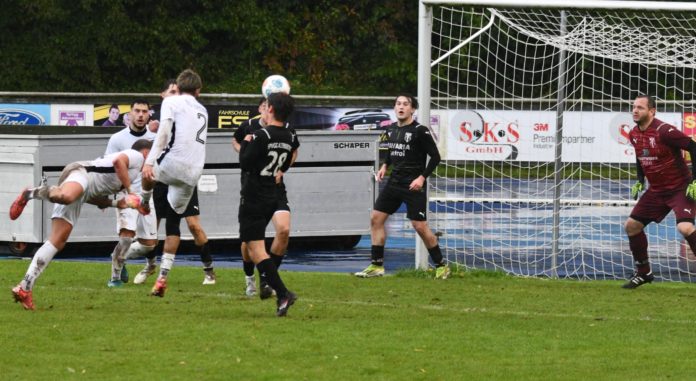 Zwei Minuten später hätten die Semptstädter fast die passende Antwort gefunden. Zunächst ging Wiam Takruri nach einem Angriff durch das Zentrum knapp außerhalb des Strafraumes zu Boden. Als die Pfeife der Unparteiischen stumm blieb, reagierte Mario Dipalo am Schnellsten: Er schnappte sich die Kugel, zog sofort ab, traf jedoch leider nur den Querbalken.