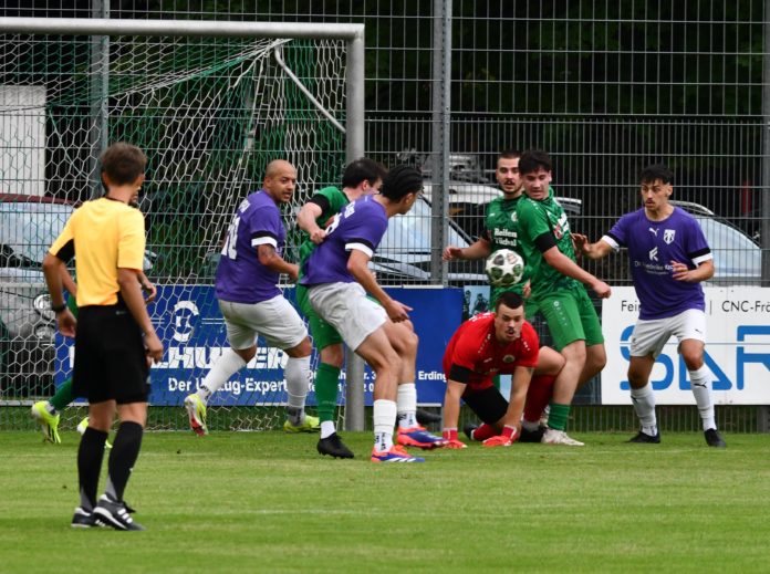 Dabei begann die Partie mit einer Schrecksekunde. Als Samuel Kronthaler an der eigenen Strafraumgrenze einen fatalen Fehlpass spielte, sah Sebastian Mack, dass Keeper Lukas Loher noch einige Meter vor seinem Tor stand, doch der Altenerdinger Torhüter kam mit den Fingerspitzen noch an den Ball und lenkte ihn über die Latte (2.)