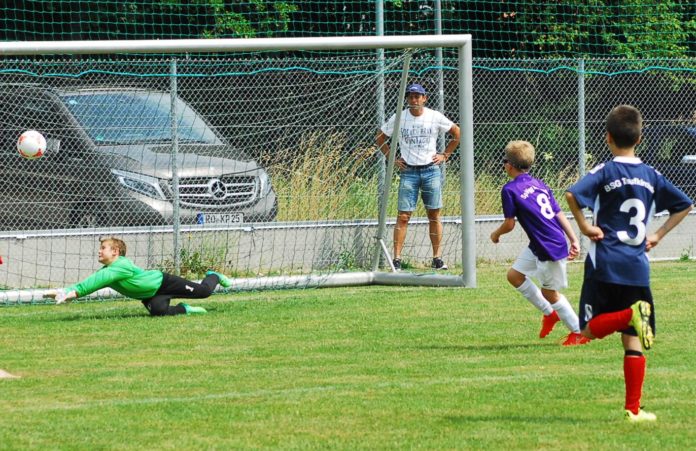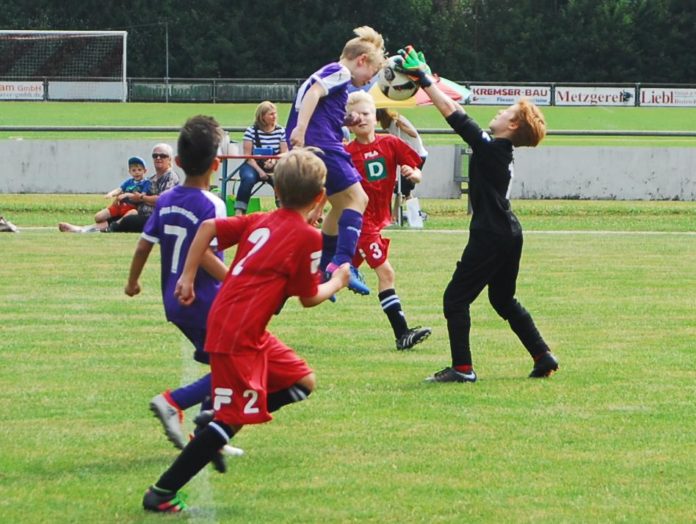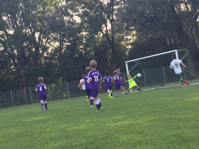 Zur späten Stunde fand am Freitag das Spiel der Altenerdinger F4-Junioren gegen den FC Grünbach statt und die Veilchen unterlagen in einem torreichen Spiel knapp mit 5:6. Trotz der abendlichen hohen Temperaturen lieferten sich die beiden Mannschaften eine sehr attraktive Partie. Den Anfang machten die Altenerdinger gleich in der 4. Minute durch Lis Amagejkaj, der nach Zuspiel von Robin Illmer ins linke untere Eck traf. Es dauerte bis zur 13. Minute ehe der FC durch einen Konter ausgleichen konnte. Direkt im Anschluss nutzen die Grünbücher einen weiten Einwurf und gingen mit 2:1 in Front. Die Antwort der Veilchen dauerte nur zwei Minute und abermals war Lis Amagjekaj, der zwei Gegenspieler aussteigen ließ und dann zum 2:2 vollendete, erfolgreich. Kurz vor der Halbzeitpause nutzten die Grünen dann einen Fehler des Heimtorwarts und markierten das 3:2. Nach der Halbzeit zeigten die Altenerdinger, wer das spielstärkere Team ist und Emilian Sailer glich nach 24 Minuten wieder aus. Im Anschluss wurde ein Handspiel im Strafraum der Grünbacher nicht geahndet und die durch die folgenden Diskussionen entstehende Unaufmerksamkeit gingen die Grünbacher im Gegenzug wieder in Front. In der 34. Minute schlug die SpVgg durch Can mit einem Freistoß, der genau im Winkel landete, wieder zurück. Die Freude über den Ausgleich war allerdings nur von kurzer Dauer und die Grünbacher fuhren zwei erfolgreiche Konter gegen die weit aufgerückten Semptstädter und erhöhten in der 33. und 34. Minute auf 6:4.Das wollte die Heimmannschaft nicht auf sich sitzen lassen und erhöhte massiv den Druck. Nach zwei weiteren fragwürdigen Aktionen im Strafraum der Grünbacher, welche möglicherweise einen Strafstoss verdient hätten, war es erneut Amagjekaj, der in der 38. Minute noch einmal den Anschluss zum 5:6 schaffte. In der Folge verpasste Jonas Petermeier nur knapp den Querpass von Amagjekaj und auch ein Fernschuss von Sailer ging knapp am Tor vorbei. Alles im allen war es ein spannendes und torreiches Spiel, bei welchem das FairPlay hätte eigentlich im Vordergrund stehen sollen.