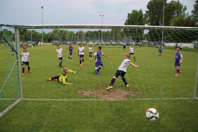 Nach nur einem Punkt aus den letzten beiden Spielen holten sich die E1-Junioren durch einen ungefährdeten 5:1-Sieg im Nachholspiel gegen den TSV Grüntegernbach wieder mal einen Dreier Die Gäste zeigten sich extrem defensiv ausgerichtet und versuchten mit einem Viererriegel vor dem eigenen Tor die Null möglichst lange zu halten. Den ersten Warnschuss gab Niki Ostermaier in der ersten Minute ab, aber der starke Keeper konnte die Kugel noch an die Latte lenken. Zwei Minuten später klingelte es dann doch, nachdem Ostermaier Mittelstürmer Ioannis Petkos in die Gasse geschickt hatte und der kaltschnäuzig verwandelte. Mit einem Abstauber stellte Petkos dann auf 2:0 (7.), was dem Spielverlauf zu diesem Zeitpunkt vollauf entsprach. Die Veilchen nisteten sich in der Gästehälfte ein und kontrollierten Ball und Gegner. Lediglich die Suche nach der Lücke, die einen erfolgreichen Abschluss ermöglichte, war in dem vielbeinigen Abwehrverbund nicht immer einfach. Yannick Molnar fasste sich nach einer Viertelstunde ein Herz und zog aus 20 Metern ab, den vom Torwart abgewehrten Ball bugsierte Nico Meurer zum 3:0 über die Linie. Als sich der TSV doch einmal geschlossen zu einem Angriff aufraffte, ging der Schuss prompt nach hinten los. Die SpVgg eroberte sich den Ball, Alesio Kosta wurde von der eigenen Hälfte aus auf die Reise geschickt und hatte viel Platz, aber keinen Gegenspieler vor sich. Flink wie ein Wiesel schüttelte er seinen einzigen Verfolger ab und verbuchte mit einem unhaltbaren Flachschuss den vierten Treffer für sein Team (20.). Eine höhere Pausenführung verhinderte mehrmals der gut aufgelegte Goalie der Grüntegernbacher, der eindeutig der Beste seiner Truppe war. 80 % Ballbesitz und klare Überlegenheit setzten sich auch in der zweiten Halbzeit fort. Lediglich die Torausbeute blieb hinter den Erwartungen zurück. Das schwül-heiße Wetter und das anstrengende Merkur Cup-Kreisfinale in den Knochen ließen nicht den erhofften Spielrausch aufkommen. Zu oft kam der entscheidende Pass zu spät oder zu ungenau oder der Erfolg wurde überhastet mit Fernschüssen aus unmöglichen Lagen gesucht. Pech hatte noch dazu Julian Geiger, dessen Schuss nur die Latte touchierte. Die letzten Tore gab es fünf Minuten vor Abpfiff zu bewundern. Zunächst erzielte Alesio Kosta mit seinem zweiten Tor das 5:0, ehe die Gäste nach einem Abwehrpatzer zu ihrem Ehrentreffer kamen. Durch diesen nie gefährdeten Sieg eroberte sich die SVA den zweiten Tabellenplatz, der für diese Saison auch das maximal Erreichbare darstellt. Denn auf dem Meisterschaftszug sitzt unangefochten der TSV Dorfen, der sich die fünf Punkte Vorsprung in den letzten beiden Spielen nicht mehr nehmen lassen wird.