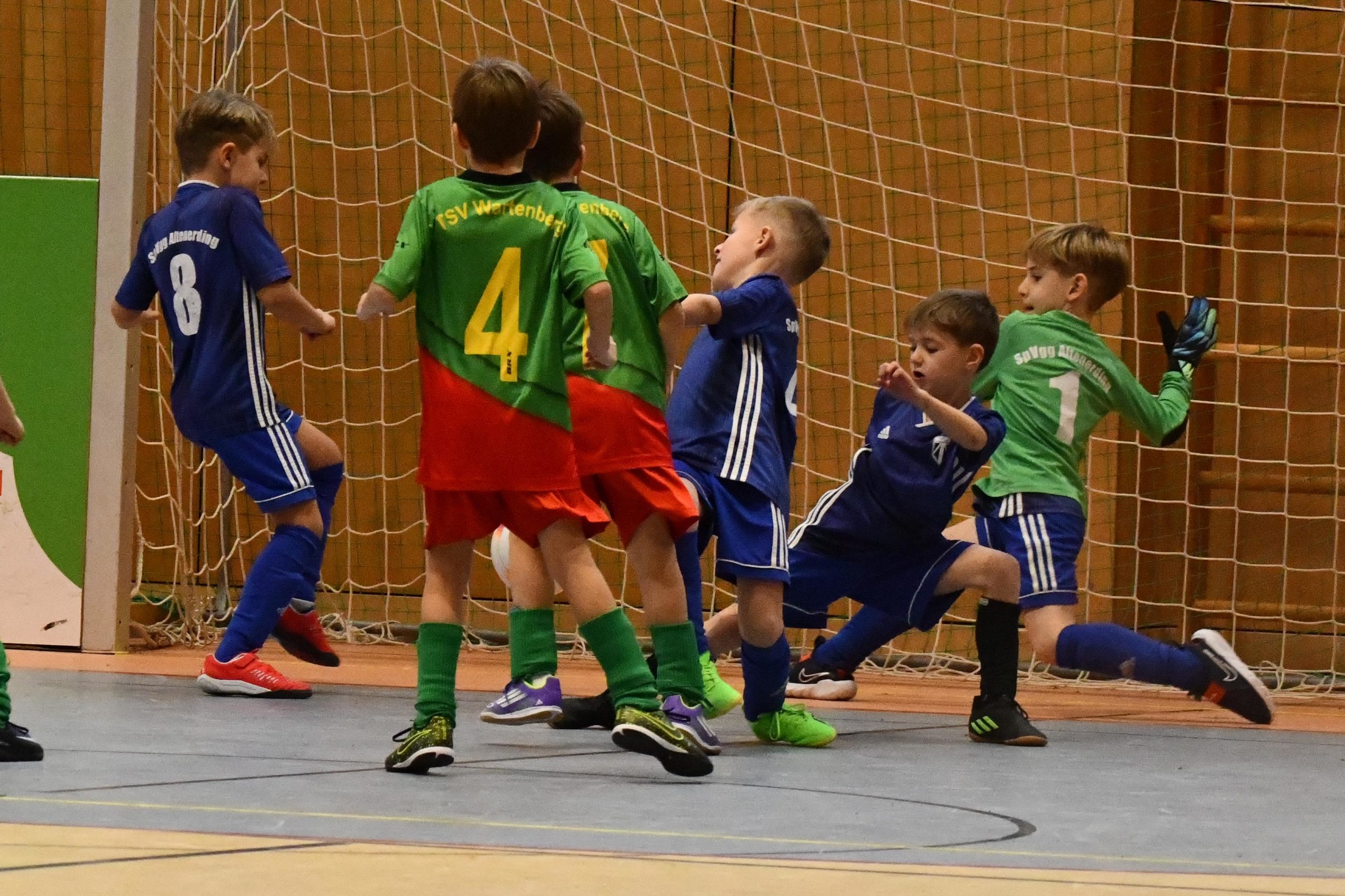 Schon vor dem Spiel gegen den bereits feststehenden Gruppensieger TSV Wartenberg standen die Vorzeichen für den Altenerdinger Nachwuchs schlecht, denn die vorausgehenden Spiele sollten zeigen, dass der TSV in einer anderen Liga spielte, und diese Vorahnungen sollten sich dann auch auf dem Parkett zeigen. Die Strogenmarkter waren von Beginn an drückend überlegen, so dass am Ende eine deutliche 0:7-Packung für die SpVgg zu Buche stand.