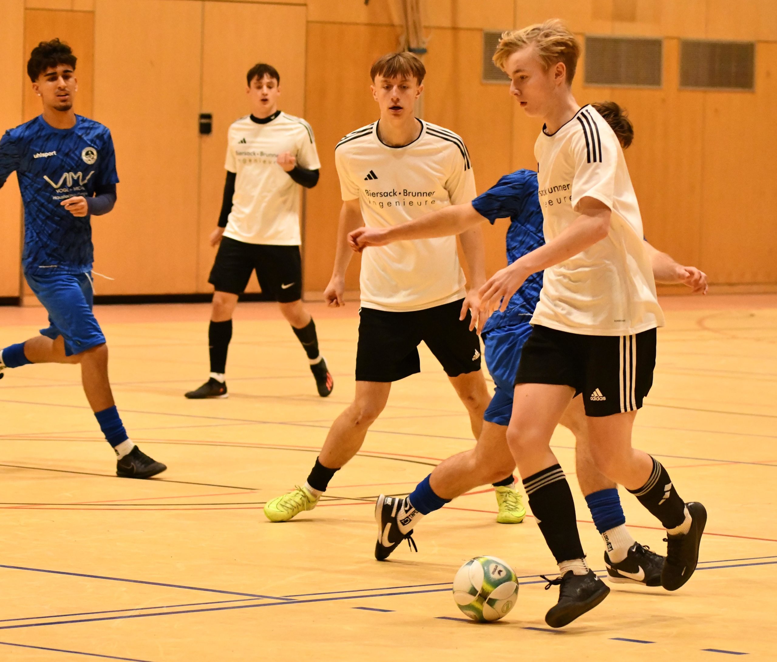 Spiel um Platz 3: FC Moosinning – SC Landshut-Berg 6:1: Der FCM hatte sich von der Halbfinalniederlage gut erholt, so dass man die Niederbayern deutlich mit 6:1 aus der Halle schoss. Von Beginn an war die Hofer-Elf drückend überlegen und vor allem machte Elias Fausts in der Anfangsphase den Unterschied und markierte mit einem lupenreinen Hattrick die 3:0-Führung für sein Team. Zwar konnte Landshut dann verkürzen, doch Moosinning machte durch Johannes Bauer, Marcel Renner und Lukas Kulterer das halbe Dutzend voll.