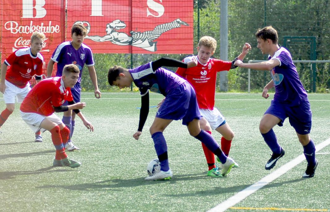 Im Kellerduell beim 1.FC Garmisch-Partenkirchen kamen die B1-Junioren der SpVgg Altenerding nicht über ein 1:1-Remis hinaus, doch letztendlich musste man mit dem Remis zufrieden sein, denn der Ausgleichstreffer, der jedoch verdient war, fiel erst in der Schlussminute. Zu Beginn des Spiels sah es für die Veilchen ganz gut aus, denn die SVA-Kicker erarbeiteten sich sofort ein optisches Übergewicht. Allerdings konnte man daraus kein Kapital schlagen, denn man agierte einerseits zu hektisch, aber auch zu umständlich, sodass man sich keine Torchancen erarbeiten konnte. Erst nach 18 Minuten musste der Garmischer Keeper eingreifen, doch er bestand die erste Probe und konnte einen 18 Meter-Flachschuss des gut spielenden Julian Bracke sicher parieren. Weiter blieb Altenerding überlegen, doch dann führte ein individueller Fehler zum Rückstand. Als die Hausherren einen langen Ball nach vorne schlugen, schien sich keine Gefahr anzubahnen, doch Simon Bauer unterlief das Leder. So kam sein Gegenspieler an die Kugel, legte in die Mitte auf seinen völlig freistehenden Mitspieler, der dann alleine vor Torhüter Valetin Worm sicher zum 1:0 vollenden konnte. Dieser Treffer zeigte bei der SpVgg Wirkung, denn nun kamen die Hausherren besser ins Spiel und zehn Minuten später drohte für die Gäste sogar der zweite Gegentreffer. Nach einer Flanke auf den langen Pfosten hatte Felix Wöginger seinen Gegenspieler aus den Augen verloren, doch die Veilchen hatten Glück, dass der Kopfball knapp am langen Pfosten vorbeiging, sodass die Seiten mit einer knappen Führung für die Garmischer gewechselt wurden. Nach Wiederbeginn hatte man zwar auch mehr vom Spiel, doch in der Offensive fehlte die Durchschlagskraft, sodass selbst in dieser Phase die besseren Chancen auf Seiten der Hausherren lagen. Nach 45 Minuten kam ein Angreifer aus 16 Metern frei zum Schuss, doch glücklicherweise ging der Schuss genau in die Tormitte, sodass Worm parieren konnte. Wenig später konnte man dann eine Hereingabe vor der das Tor nicht entscheidend klären, doch Worm war abermals zur Stelle und konnte einen Schuss aus spitzem Winkel hervorragend parieren. In der 56. Minute hoffte dann der Altenerdinger Anhang auf den Ausgleich. Luis Graf schlug von der rechten Seite die Kugel hoch vor das Tor. Der aus dem Gehäuse kommende Keeper konnte das Leder nicht kontrollieren, sodass Maximiliano Hopf und Bracke nachstocherten, das Leder aber nicht über die Linie brachten. Wenig später versuchte sich dann Bracke aus der Ferne, doch der Torhüter konnte den 25 Meter-Schuss gerade noch über die Latte lenken. Auch 15 Minuten vor dem Ende war der Torhüter gefordert, doch er war auch diesmal auf der Hut und konnte eine verunglückte Flanke von Maximilian Huber gerade noch zur Ecke abwehren. In der Folgezeit setzten die Veilchen alles auf eine Karte und man beorderte Innenverteidiger Tobias Lamm in die Sturmspitze. Dadurch wurde die Defensive natürlich deutlich anfälliger, doch die Garmischer konnten dies nicht nutzen und ließen einige vielversprechende Kontermöglichkeiten liegen. Dies sollte sich rächen, denn in der Schlussminute gelang der SpVgg noch der Ausgleich. Nach einem Foul an Marius Orthuber brachte Huber das Leder nach innen und fand im Zentrum Lamm, der aus kurzer Entfernung zum vielumjubelten 1:1 vollendete. Nun wollten die Gäste mehr und drängten auf den Sieg und in der Nachspielzeit hoffte man auf den ersten Saisonerfolg, denn nach einem Foulspiel an Noar Aliu hätte es Elfmeter für die SpVgg geben müssen, doch der ansonsten sehr gut leitende Referee ließ weiterspielen, sodass man sich mit einer Punkteteilung begnügen musste.