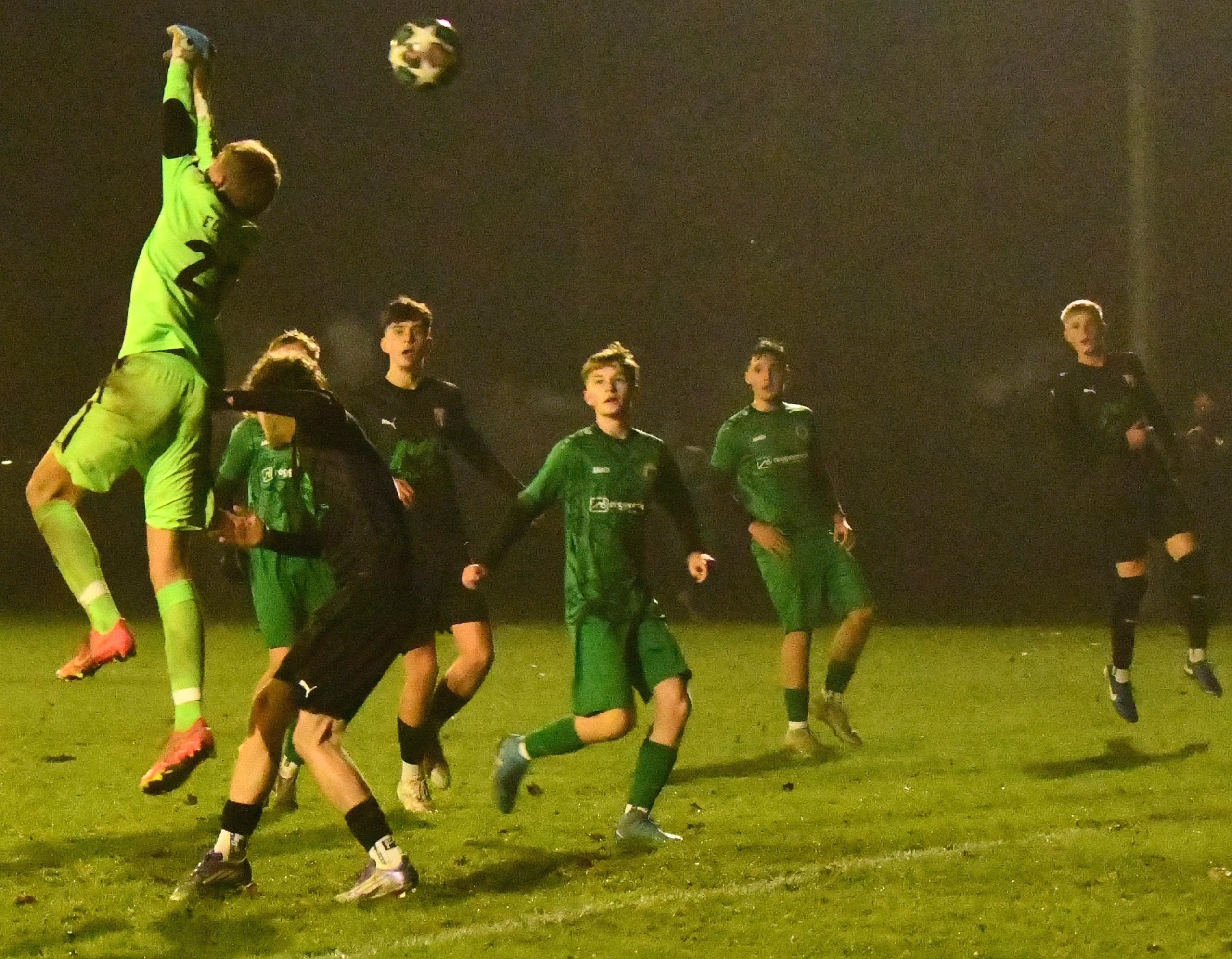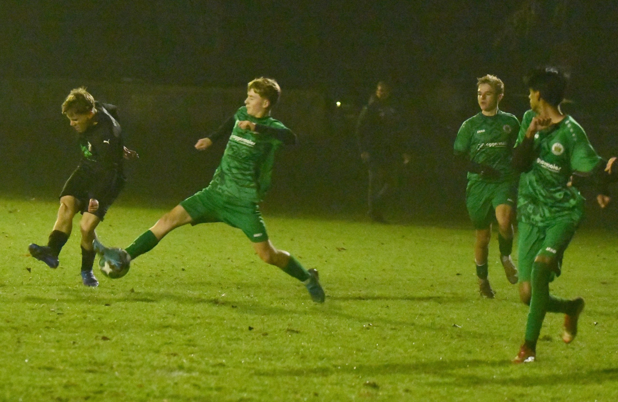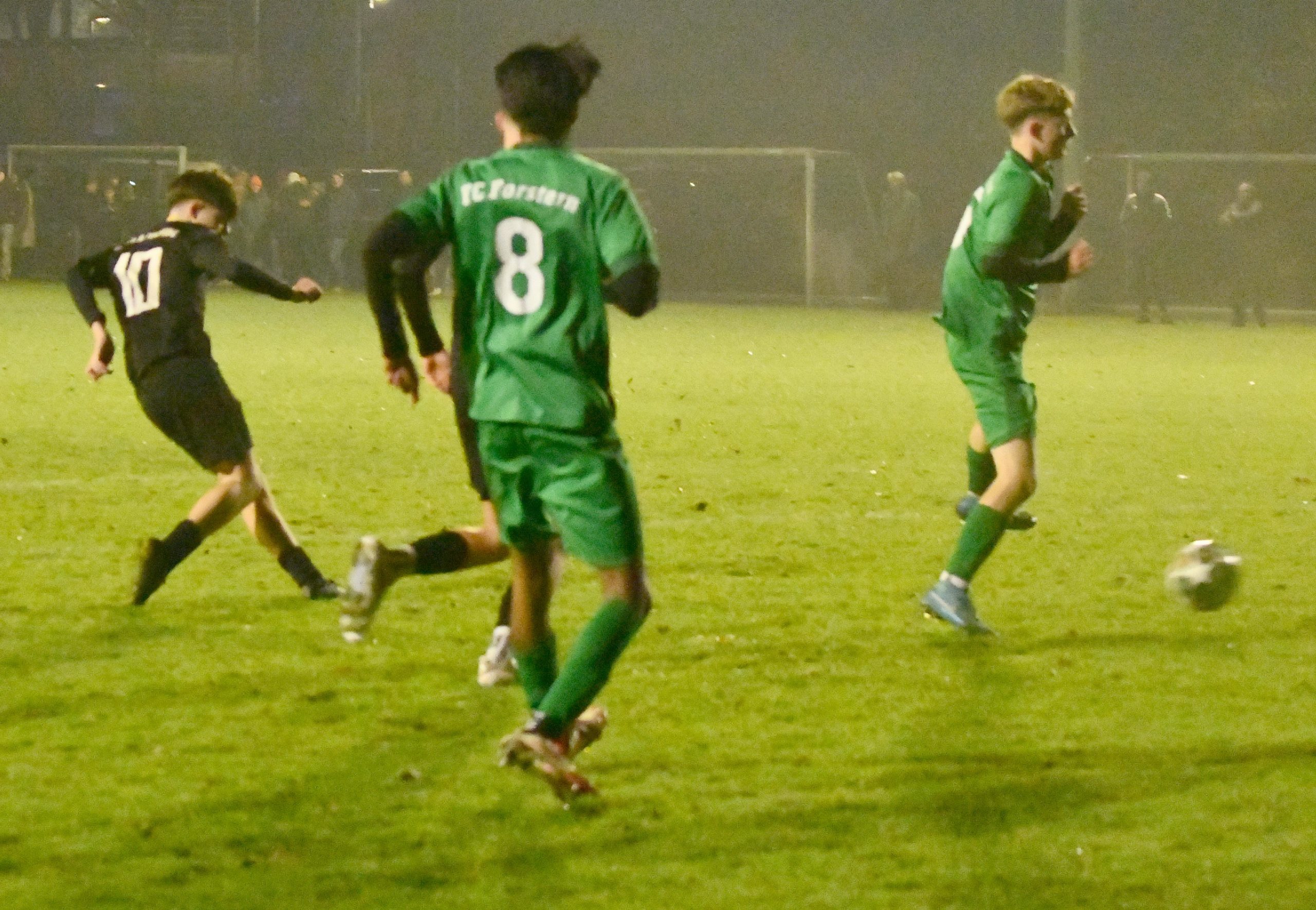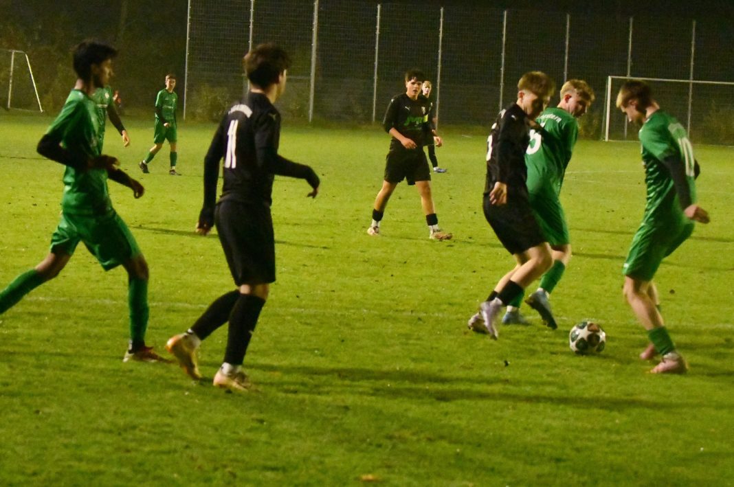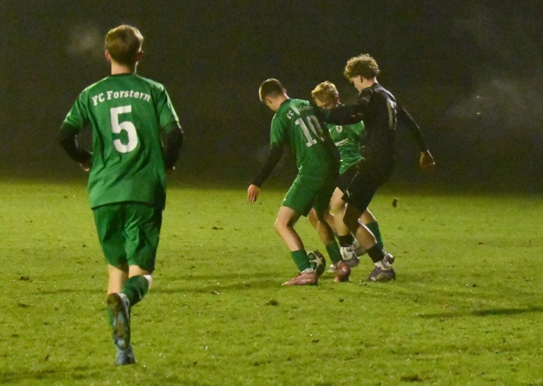 Spitzenreiter gegen das Tabellenschlusslicht – die Vorzeichen im Spiel der B-Junioren zwischen dem bisherigen Klassenprimus SpVgg Altenerding gegen den FC Forstern schienen die Rollen klar verteilt, doch es sollte ganz anders kommen, als die Experten vor Spielbeginn erwartet hatten. Obwohl die Hausherren das überlegene Team stellten, sollte der krasse Außenseiter letzten Endes dank eines Last-Minute-Treffers die drei Punkte für sich beanspruchen. Der Favorit scheiterte an der mangelhaften Chancenauswertung – man ließ zahleiche erstklassige Möglichkeiten liegen, wobei der überragende FCF-Schussmann Lukas Letsch großen Anteil am Sieger seiner Farben hatte. Schon nach drei Minuten war er erstmals gefordert: Nach einem schönen Pass von Ben Wacker eilte Oliver Baron allein auf das Tor zu, doch der Schuss hatte deutlich zu wenig Fahrt, so dass Letsch sicher parieren konnte. Auch die nächste Chance hatten die Veilchen: Nach einem Einwurf legte der im Strafraum stehende Wacker auf Fabio Figliuzzi ab, doch auch er fand seinen Meister im FCF-Keeper (16.). Zwei Minuten später zögerte der Altenerdinger Torhüter Kilian Burgholzer etwas zu lange, so dass sein Pass nach vorne geblockt wurde. So wurde der Ball sofort in die Tiefe gespielt, wo Kapitän Jakob Stadler im Strafraum aus halblinker Position zum Schuss kam, aber das Leder am Ziel vorbeisetzte. Anschließend nahmen die Platzherren wieder das Heft in die Hand und man hatte ein deutliches spielerisches Übergewicht, doch die sehr disziplinierte Defensive der Gäste verteidigte kompakt, so dass die ganz klaren Tormöglichkeiten ausblieben. „Forstern agiert deutlich besser, als es der Tabellenplatz ausdrückt“, erkannte der Altenerdinger Coach Goekman Uluhan die starke Leistung des Gegners an und war vor allem von der spielerischen Qualität überrascht. Kurz vor der Pause dann nochmal einmal eine gute Chance für sein Team, doch Tobias Mertl brachte das Leder, das Letsch nach einer Flanke unterlaufen hatte, nicht im Tor der Gäste unter, so dass die Seiten torlos gewechselt wurden. Nach der Pause entwickelte sich zunächst ein Spiel auf Augenhöhe, denn der FCF hielt nun gut dagegen, und fuhr auch einige Angriffe, die aber nicht konsequent zu Ende gespielt wurden. Die Gastgeber setzten zunächst auf Konter, ließen dabei aber auch die Zielstrebigkeit vermissen – daher blieben die ganz dicken Möglichkeiten zunächst aus. Mit zunehmender Spieldauer mussten die Gäste dem intensiven Spiel dann aber Tribut zollen und die Hausherren nahmen wieder das Zepter in die Hand, ließen aber auch viele Chancen ungenutzt. Als Luca Biewer nach Zuspiel von Ben Wacker zum Abschluss kam, fehlte es dem Torjäger beim Abschluss an der Genauigkeit. Wenig später schien die Führung dann perfekt: Abermals war es der umtriebige Wacker, der die nächste Großchance initiierte, doch der fünf Meter vor dem Tor stehende Figliuzzi konnte auch diese Chance nicht zu zählbarem Erfolg verwerten. Bei der SpVgg war langsam Verzweiflung zu spüren, während die Gäste immer mehr an eine Überraschung glaubten, und beherzt um jeden Zentimeter Boden kämpften. Die grün gewandeten Gäste hatte aber auch das nötige Glück, als Tobias Mertl nach einer Freistoßflanke von Figliuzzi erneut fahrlässig vergab. Auch Wacker, der nach tollem Solo beim Abschluss das verwaiste Tor verfehlte, konnte den Bann nicht brechen. Eine vergleichbare Qualität hatte auch die Chance von Biewer, der nach Querpass von Figliuzzi frei vor dem Tor den Ball nicht richtig traf. Neben dem Unvermögen fehlte der SoVgg auch das nötige Glück, denn ein Figliuzzi-Freistoß aus 25 Metern, bei dem Letsch keine Reaktion mehr zeigte, ging um Haaresbereite am Tor vorbei. So kam es, wie es kommen musste: In der vierten Minute der Nachspielzeit nutzten die Gäste einen Angriff zum Lucky-Punch. Als Jakob Stadler einen Pass von Timo Gartner auf die linke Seite aufnahm, konnte er sich sehenswert durchsetzen und fand bei seinem Abspiel im Zentrum den eingewechselten Vincent Berger, der zum vielumjubelten 1:0 einschoss. Fast hätte Altenerding noch die richtige Antwort gefunden, doch abermals war Letsch zur Stelle, konnte einen Volleyschuss von Biewer aus sieben Metern meistern, so dass die Veilchen, die nicht für möglich gehaltene Niederlage abwenden konnten, und die erste letzte Woche eingenommene Tabellenführung wieder abgeben mussten.