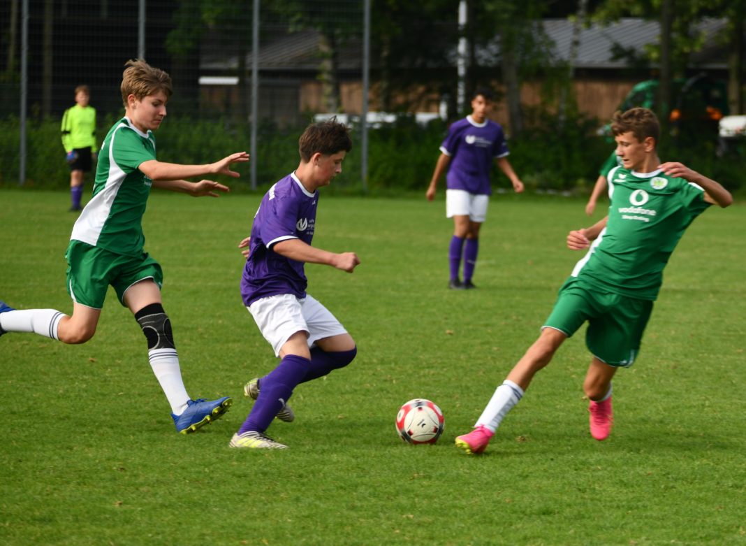 Im letzten Punktspiel der Saison trennten sich die B2-Junioren der Spvgg Altenerding B2 und vom FC Forstern leistungsgerecht mit 1:1 unentschieden. Von Beginn an hatten die Hausherren größere Spielanteile und einige gute Torchancen. In der fünften Minute dribbelte Liman Bytrici von der Mittellinie in den Strafraum, und zog aus zehn Meter ab, doch ging das Leder genau auf den Keeper ab. Nur eine Minute später erhielt Ayahm Hashim ein mustergültiges Anspiel von Oliver Benedikt, doch auch Hashim´s Schuss konnte vom FCF-Keeper pariert werden. Nach neun Minuten belohnten sich die Hausherren und ging mit 1:0 in Front. Als Forstern einen Fernschuss von Carli Schönfelder nur unzureichend abwehren konnte, war Luis Kapsner zur Stelle und staubte zur 1:0-Führung seiner Farben ab. Fünf Minuten später prüfte Carl Schönfelder nochmals den Forsterner Schlussmann mit einem Freistoß aus 20 Metern, der aber die Prüfung souverän bestand. Aber damit hatten die Semptstädter ihr Pulver weitestgehend verschossen und die Gäste drehten nun auf und drängten die Veilchlen in die Defensive. Zunächst konnte man die Vorstöße der Gäste erfolgreich abwehren, doch in der 28. Minute glückte dem FCF dann doch der zu diesem Zeitpunkt verdiente Ausgleich. Als die Abwehr der SpVgg einen Freistoß von der rechten Strafraumseite nicht aus der Gefahrenzone brachte, war ein Stürmer der Gäste zur Stelle und markierte aus der Nahdistanz den 1:1-Pausenstand. In der zweiten Halbzeit entwickelte sich ein spannendes, völlig offenes Spiel mit Torchancen auf beiden Seiten. Hierbei vergaben Ahyham Haschim, Luis Kapsner und Armend Krasniqi einige Möglichkeiten der Gastgeber im Strafraumbereich. Auf der anderen Seite waren die Forsterner auf der Gegenseite ähnlich uneffektiv, was aber auch dem starken Altenerdinger Schlussmann Kilian Burgholzer zu verdanken war. Damit trennten sich die beiden Mannschaften gerecht 1:1 und die Altenerdinger beendeten die Saison auf Tabellenplatz 6.