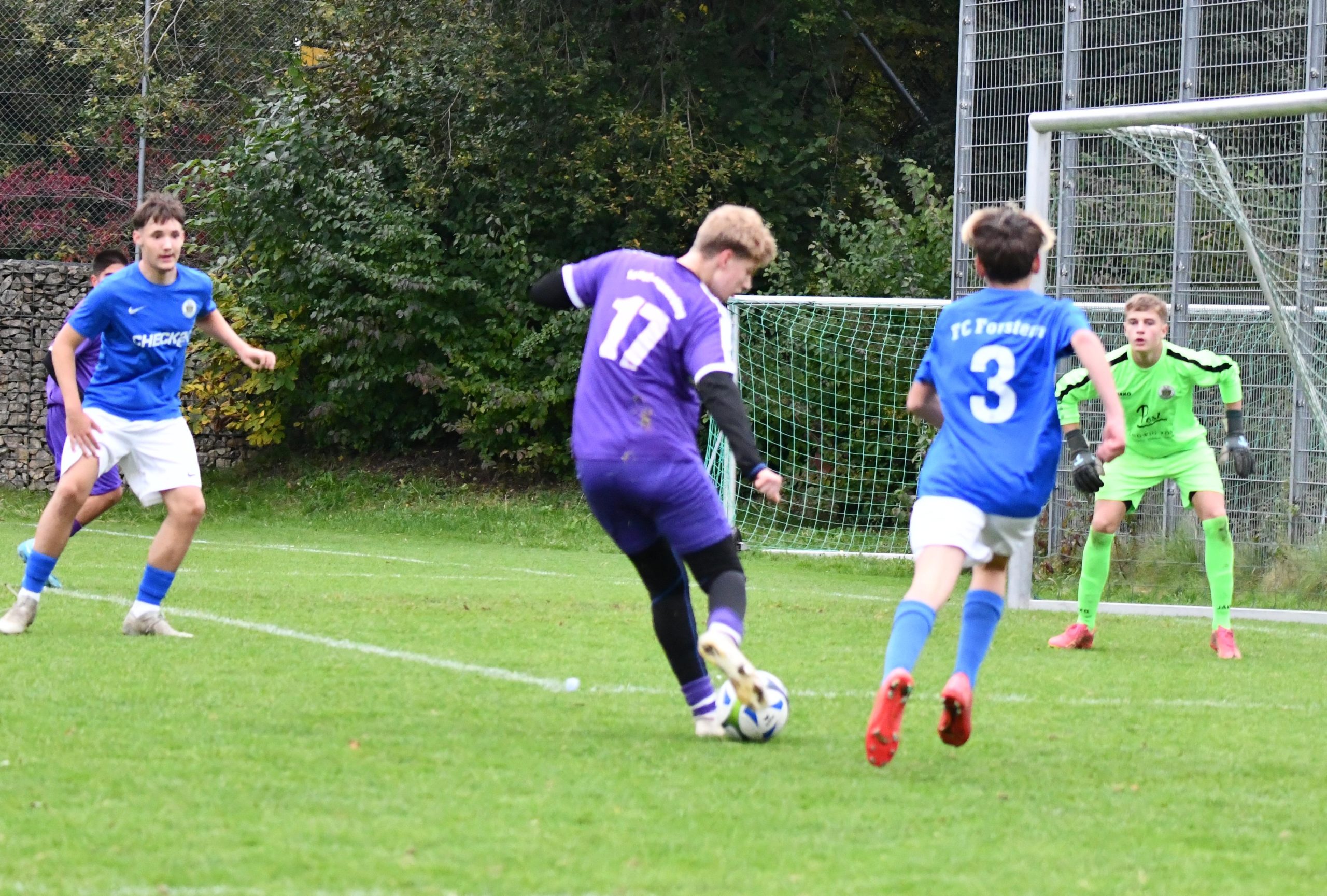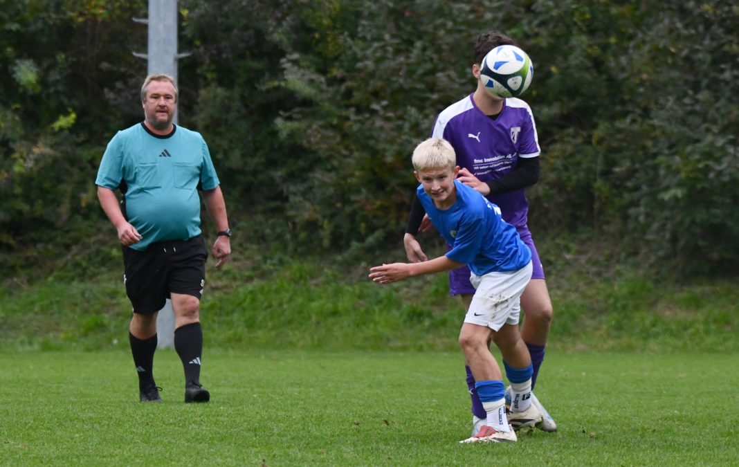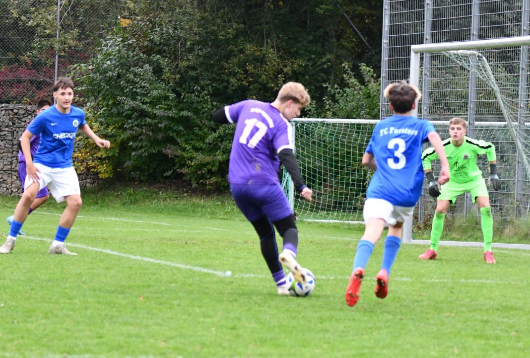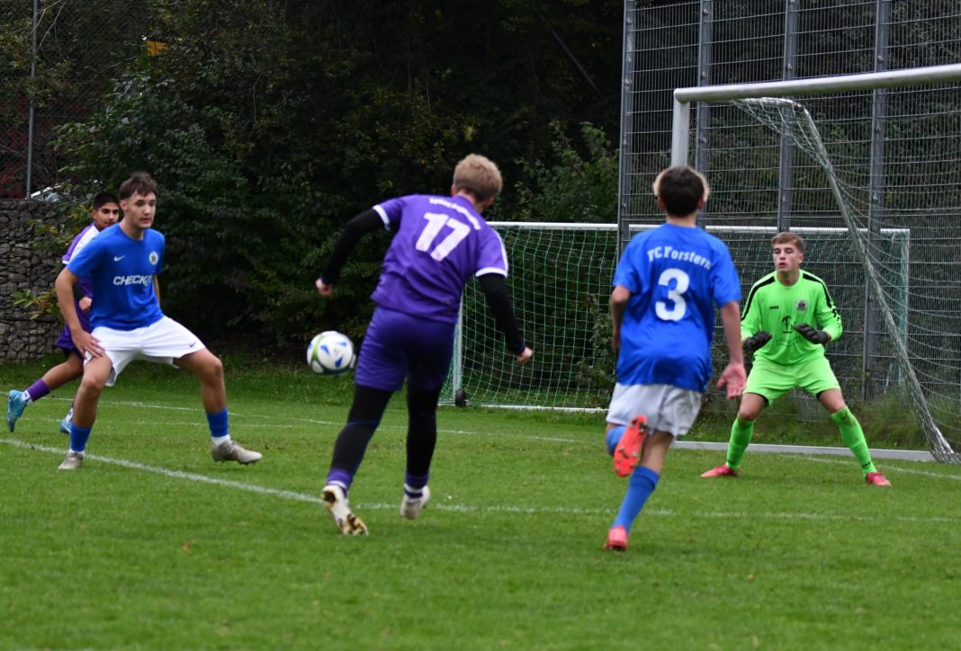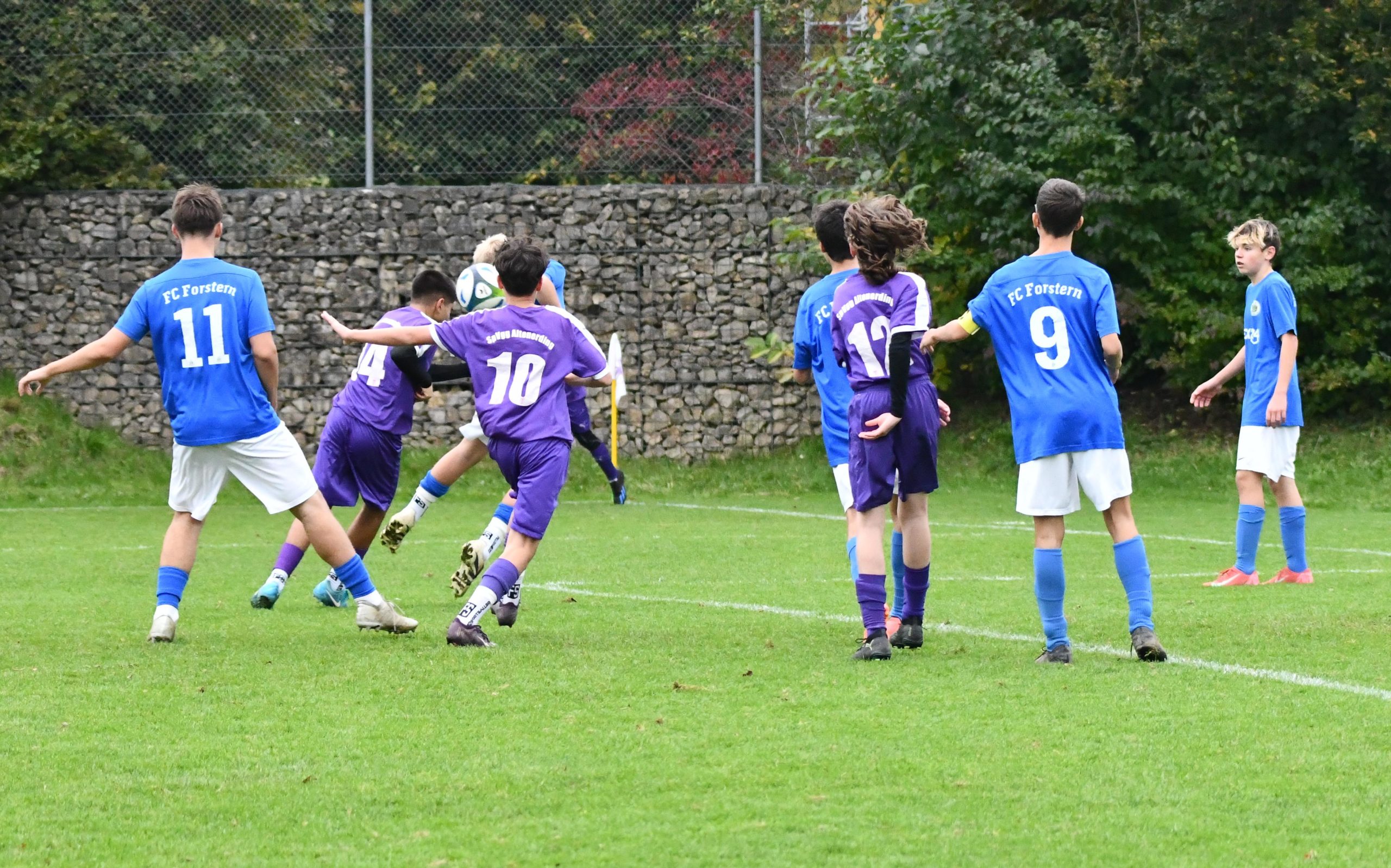 Trotz einer tadellosen kämpferischen Vorstellung unterlagen die B3-Junioren im Spitzenspiel der bislang verlustpunktfreien Teams gegen den FC Forstern II am Ende deutlich mit 1:5, vergaben aber ein weit besseres Ergebnis durch eine katastrophale Chancenverwertung. Während die Veilchen zunächst aus einer stabilen Defensive ins Spiel finden wollten, drückten die Gäste von Beginn an auf die Tube und hatten bereits nach zwei Spielminuten die erste vielversprechende Tormöglichkeit, doch der auf der rechten Seite durchgebrochene Stürmer hob das Leder über Keeper Emilian Schreyer, aber auch über den Querbalken. So bedurfte es einer Nachlässigkeit der Hausherren, als nach 10 Minuten ein Abschlag missriet und bei einem völlig frei stehenden Gästestürmer etwa 20 Meter vor dem Gehäuse landete. Bevor die Altenerdinger Abwehr diesen stellen konnte, versenkte dieser die Kugel zum frühen Rückstand. Fast hätte der FC Forstern unmittelbar nachlegen können, denn nach einem langen Ball auf links kam Schlussmann Emilian Schreyer, am Strafraumeck herausgeeilt, einen Schritt zu spät, so dass der Forsterner Spieler ihm den Ball durch die Beine schieben konnte. Doch statt eines schnellen Abschlusses, wollte dieser den Ball nochmals nach innen legen, so dass die Lila-Weißen in höchster Not klären konnten. Im Gegenzug vergaben indes die Hausherren den ersten Hochkaräter. Simon Faust lies seinen Gegenspieler auf der rechten Seite aussteigen, zog in den Strafraum, setzte das Leder jedoch aus aussichtsreicher Position am langen Pfosten vorbei. Die Gäste zeigten sich hier wesentlich effektiver. Nach 29 Spielminuten ließen die Altenerdinger den FC Forstern am Strafraum zu viel Platz, störten nicht entscheidend bei einem Doppelpass, so dass die Gäste plötzlich frei vor dem Tor auf 2 : 0 erhöhten. Doch es sollte noch schlimmer kommen. Nach 35 Minuten führte ein nahezu identischer Spielzug durchs Zentrum zum 0 : 3 Rückstand. Die nimmermüden Veilchen gaben trotz des deprimierenden Spielstands nie auf und hatten in den letzten fünf Minuten vor dem Wechsel allein drei Hundertprozentige auf dem Schlappen. Zunächst scheiterte der stark aufspielende Liman Bytici gleich zweimal innerhalb einer Zeigerumdrehung alleine durchgebrochen vor dem Forsterner Keeper, indem er die Bälle überhastet neben das Gehäuse setzte. Unmittelbar vor dem Pausenpfiff rutschte dann David Oganian am Fünfer frei vor dem Tor weg und vermochte das Leder ebenfalls nicht zu versenken. Zu Beginn des zweiten Durchgangs mussten die Semptstädter zunächst einmal durchatmen, als sich ein Fernschuss der Gäste nach einer zu kurzen Abwehr aus dem Sechzehner an die Latte senkte. Doch in der 50 Spielminute keimte nochmals Hoffnung auf, als Liman Bytici sich auf der rechten Seite den Ball erkämpfte und mit einem satten Flachschuss zum 1 : 3 verkürzte. Die Veilchen drückten nun auf den Anschluss und waren diesem nach 58 Minuten sehr nah, doch der Forsterner Kreisligakeeper lenkte einen Schuss des unermüdlichen Liman Bytici von der Strafraumgrenze mit den Fingerspitzen noch über das Gebälk. Eine Minute später kam der Ball auf der rechten Seite zu dem frei stehenden Juan Ahlschläger, der das Leder aus gut 14 Metern knapp neben den rechten Pfosten schlenzte. Der Chancenwucher sollte sich rächen und der FC Forstern entschied die Partie mit einem Doppelschlag. In der 65. und 66. Spielminute liefen die aufgerückten Altenerdinger jeweils in einen Konter, den die Gäste effizient ausspielten und auf 5:1 davon zogen. trotz des klaren Rückstands gaben die Altenerdinger zu keinem Zeitpunkt der Partie auf und versuchten in einer wilden Schlussphase nochmals alles nach Vorne zu werfen, ohne jedoch Kosmetikkorrektur betreiben zu können. Trotz der Enttäuschung nach Abpfiff heißt es das Positive mitzunehmen, denn am kommenden Wochenende wartet bereits das nächste Topspiel bei der SG Isen/St. Wolfgang.