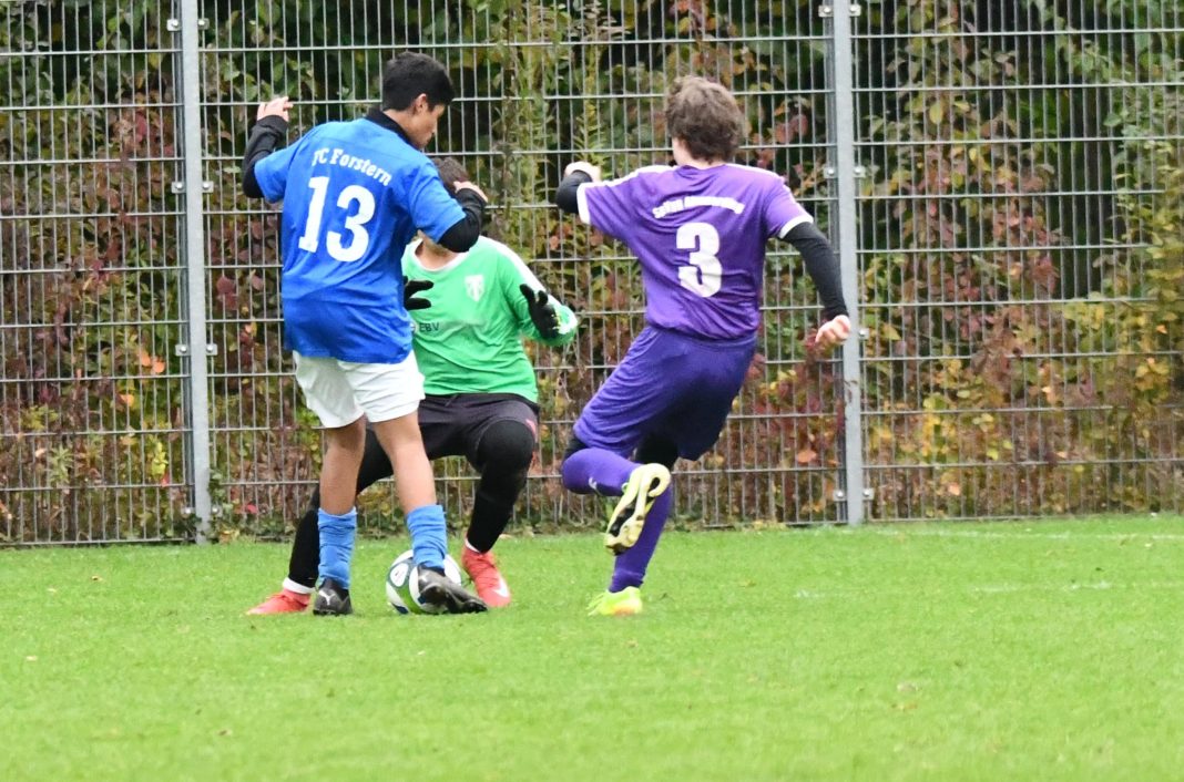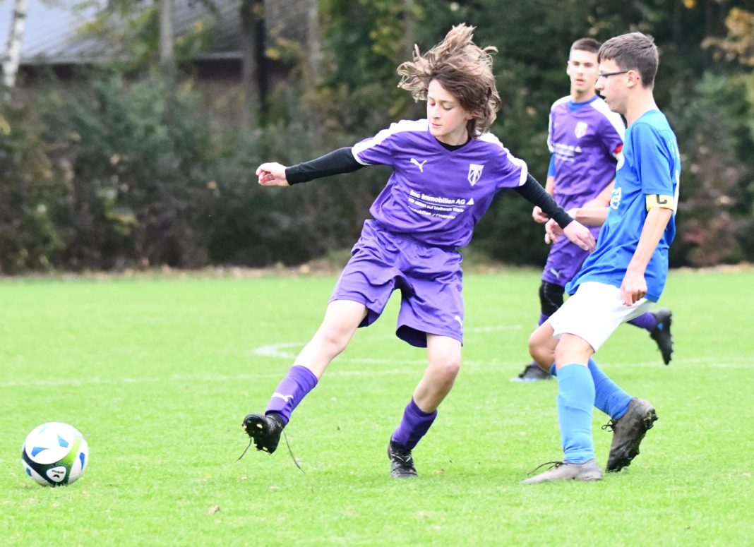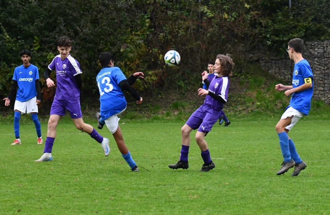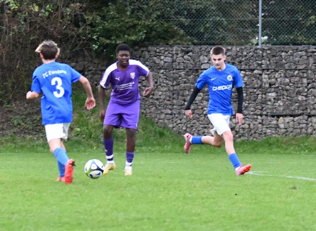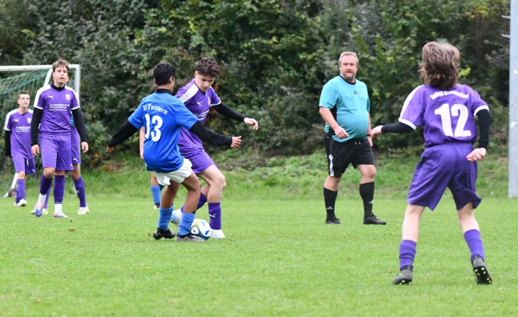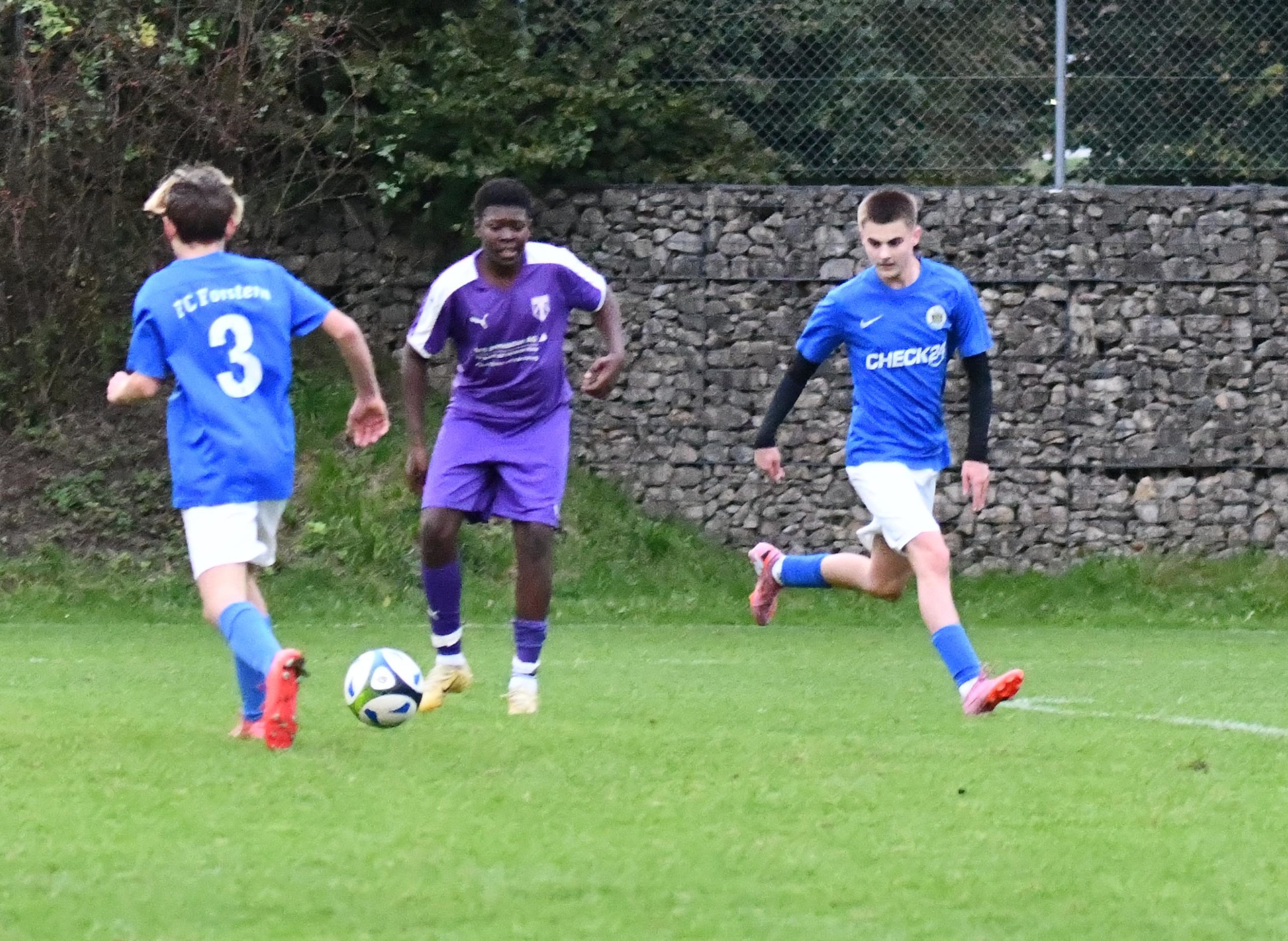 Trotz einer tadellosen kämpferischen Vorstellung unterlagen die B3-Junioren im Spitzenspiel der bislang verlustpunktfreien Teams gegen den FC Forstern II am Ende deutlich mit 1:5, vergaben aber ein weit besseres Ergebnis durch eine katastrophale Chancenverwertung. Während die Veilchen zunächst aus einer stabilen Defensive ins Spiel finden wollten, drückten die Gäste von Beginn an auf die Tube und hatten bereits nach zwei Spielminuten die erste vielversprechende Tormöglichkeit, doch der auf der rechten Seite durchgebrochene Stürmer hob das Leder über Keeper Emilian Schreyer, aber auch über den Querbalken. So bedurfte es einer Nachlässigkeit der Hausherren, als nach 10 Minuten ein Abschlag missriet und bei einem völlig frei stehenden Gästestürmer etwa 20 Meter vor dem Gehäuse landete. Bevor die Altenerdinger Abwehr diesen stellen konnte, versenkte dieser die Kugel zum frühen Rückstand. Fast hätte der FC Forstern unmittelbar nachlegen können, denn nach einem langen Ball auf links kam Schlussmann Emilian Schreyer, am Strafraumeck herausgeeilt, einen Schritt zu spät, so dass der Forsterner Spieler ihm den Ball durch die Beine schieben konnte. Doch statt eines schnellen Abschlusses, wollte dieser den Ball nochmals nach innen legen, so dass die Lila-Weißen in höchster Not klären konnten. Im Gegenzug vergaben indes die Hausherren den ersten Hochkaräter. Simon Faust lies seinen Gegenspieler auf der rechten Seite aussteigen, zog in den Strafraum, setzte das Leder jedoch aus aussichtsreicher Position am langen Pfosten vorbei. Die Gäste zeigten sich hier wesentlich effektiver. Nach 29 Spielminuten ließen die Altenerdinger den FC Forstern am Strafraum zu viel Platz, störten nicht entscheidend bei einem Doppelpass, so dass die Gäste plötzlich frei vor dem Tor auf 2 : 0 erhöhten. Doch es sollte noch schlimmer kommen. Nach 35 Minuten führte ein nahezu identischer Spielzug durchs Zentrum zum 0 : 3 Rückstand. Die nimmermüden Veilchen gaben trotz des deprimierenden Spielstands nie auf und hatten in den letzten fünf Minuten vor dem Wechsel allein drei Hundertprozentige auf dem Schlappen. Zunächst scheiterte der stark aufspielende Liman Bytici gleich zweimal innerhalb einer Zeigerumdrehung alleine durchgebrochen vor dem Forsterner Keeper, indem er die Bälle überhastet neben das Gehäuse setzte. Unmittelbar vor dem Pausenpfiff rutschte dann David Oganian am Fünfer frei vor dem Tor weg und vermochte das Leder ebenfalls nicht zu versenken. Zu Beginn des zweiten Durchgangs mussten die Semptstädter zunächst einmal durchatmen, als sich ein Fernschuss der Gäste nach einer zu kurzen Abwehr aus dem Sechzehner an die Latte senkte. Doch in der 50 Spielminute keimte nochmals Hoffnung auf, als Liman Bytici sich auf der rechten Seite den Ball erkämpfte und mit einem satten Flachschuss zum 1 : 3 verkürzte. Die Veilchen drückten nun auf den Anschluss und waren diesem nach 58 Minuten sehr nah, doch der Forsterner Kreisligakeeper lenkte einen Schuss des unermüdlichen Liman Bytici von der Strafraumgrenze mit den Fingerspitzen noch über das Gebälk. Eine Minute später kam der Ball auf der rechten Seite zu dem frei stehenden Juan Ahlschläger, der das Leder aus gut 14 Metern knapp neben den rechten Pfosten schlenzte. Der Chancenwucher sollte sich rächen und der FC Forstern entschied die Partie mit einem Doppelschlag. In der 65. und 66. Spielminute liefen die aufgerückten Altenerdinger jeweils in einen Konter, den die Gäste effizient ausspielten und auf 5:1 davon zogen. trotz des klaren Rückstands gaben die Altenerdinger zu keinem Zeitpunkt der Partie auf und versuchten in einer wilden Schlussphase nochmals alles nach Vorne zu werfen, ohne jedoch Kosmetikkorrektur betreiben zu können. Trotz der Enttäuschung nach Abpfiff heißt es das Positive mitzunehmen, denn am kommenden Wochenende wartet bereits das nächste Topspiel bei der SG Isen/St. Wolfgang.
