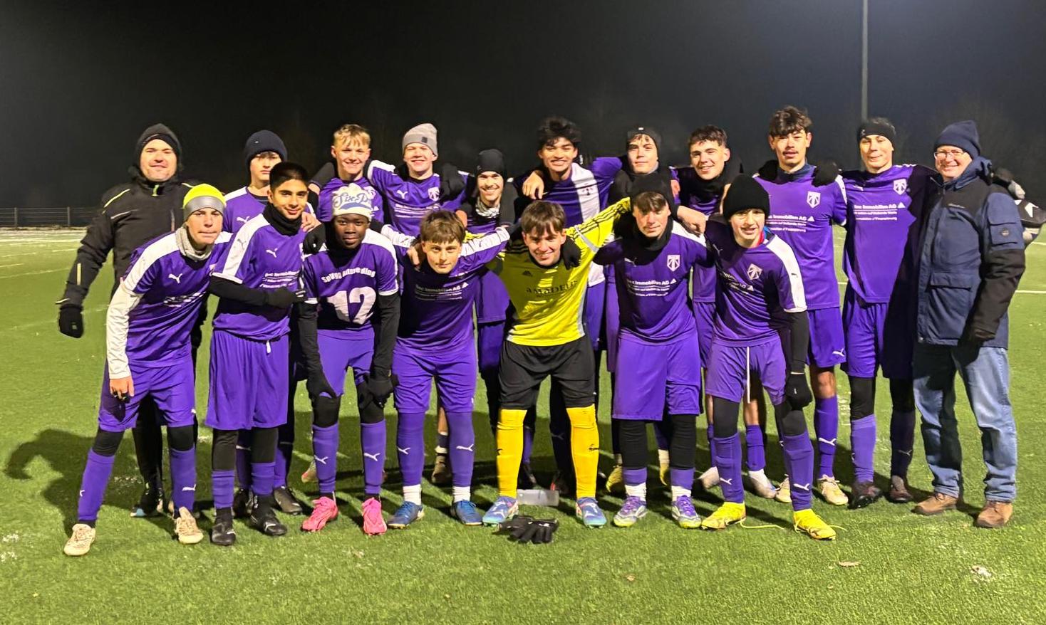 Mit einem verdienten 3:0 im abschließenden Nachholspiel, das wegen der frostigen Witterung nicht in Berglern, sondern auf dem Erdinger Kunstrasen ausgetragen wurde, sprangen die Veilchen noch vom 4. Tabellenplatz an die Spitze und sicherten sich so die Meisterschaft in der Herbstrunde. Obwohl es für beide Teams nicht leicht war, auf dem gefrorenen Untergrund ein kontrolliertes Passspiel aufzuziehen, begannen die Hausherren beherzt und gingen bereits nach sieben Spielminuten mit der ersten guten Möglichkeit in Führung. Eine Hereingabe von rechts in den Sechzehner fand ihren Weg zu Liman Bytyci, der mit einem strammen Schuss dem Berglerner Keeper keine Chance ließ und auf 1:0 stellte. Die Semptstädter setzten sofort nach und wollten den Sack früh zu machen. In der 14. Minute segelte ein Eckball in die Mittelstürmerposition, wo erneut Goalgetter Bytyci Maß nahm und auf 2:0 erhöhte. Nach einer halben Stunde schien die Messe gelesen, denn nach schöner Kombination, erneut über den starken Bytyci kam Philipp Marburg am Sechzehner zum Abschluss und versenkte das Leder fulminant in den Berglerner Kasten. Doch der Referee wähnte den Passgeber beim Schuss im Sichtfeld des Schlussmanns und im Abseits, so dass dem Treffer die Anerkennung versagt blieb. Zwei Minuten später bot sich Fabian Felsner die Gelegenheit für seine Farben zu erhöhen, als er über mehrere Stationen am rechten Strafraumeck frei gespielt wurde, jedoch die Kugel am Gehäuse vorbeizog. Drei Minuten vor dem Wechsel sollte doch noch der vorentscheidende dritte Treffer gelingen. Diesmal krönte David Oganian seine seit Wochen starken Leistungen und netzte das Leder nach einer Ecke, die der Edeltechniker am Elferpunkt aus der Drehung aufs Tor brachte, neben dem langen Pfosten ein. Es war nicht so, dass die Gäste keine Bemühungen nach vorne zeigten, doch die starke Defensive um Paul Balling, Daniel Dreznjak, Felician Isele, Marco Langer und Bartu Pehlivan war kaum in Bedrängnis zu bringen. Im zweiten Durchgang verwalteten die Lila-Weißen ihre Führung, so dass das Spiel, bei immer unfreundlicheren Temperaturen dem Ende zuging. Zehn Minuten vor Abpfiff gab es nochmals einen Aufreger. Nach einem langen Ball auf die rechte Seite erlief Paul Balling den davongeeilten Gästestürmer und trennte ihn mit einer dosierten Grätsche fair vom Ball. Der Unparteiische wertete die Aktion nach einigem Zögern zur Überraschung der Heimelf anders und zeigte auf den Punkt. Doch Leonhard Kulterer parierte den nicht schlecht geschossenen Strafstoß mit einer famosen Parade und war auch, nachdem das Leder nochmals nach innen kam, nicht zu überwinden und fischte einen aus 8 Metern flach getretenen Schuss noch aus der Ecke. So stand nach Abpfiff nicht nur die Null auf Seiten der Altenerdinger, sondern auch der umjubelte Meistertitel.
