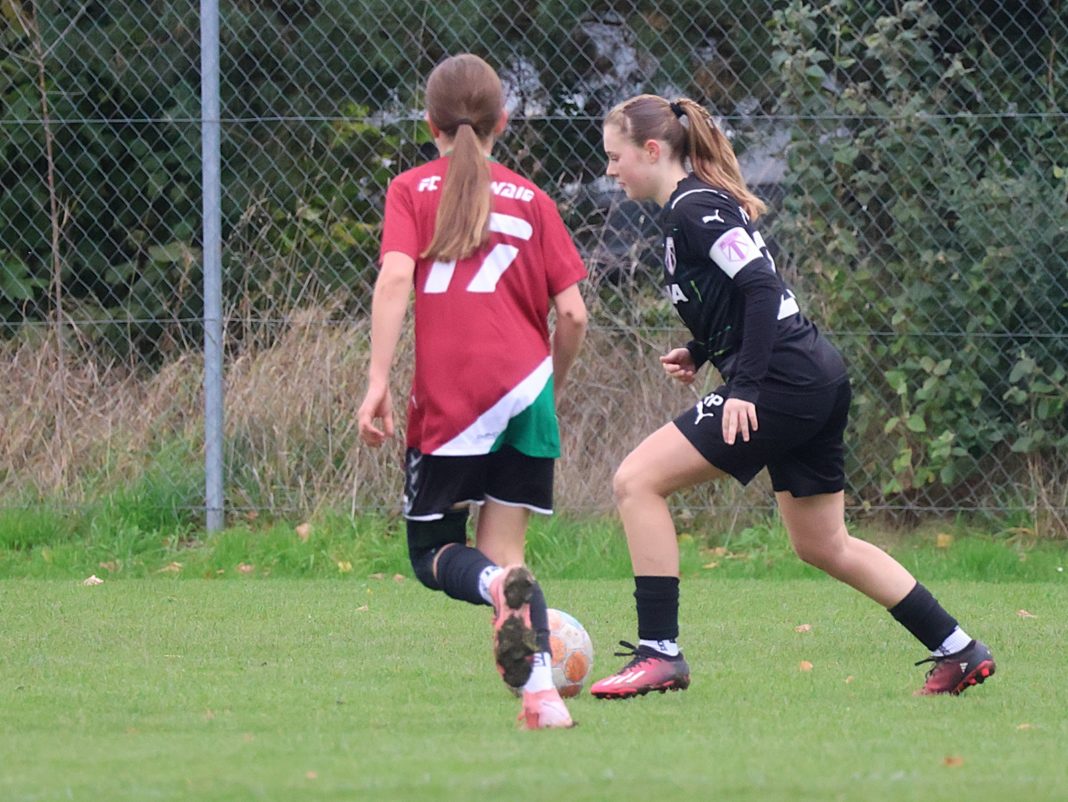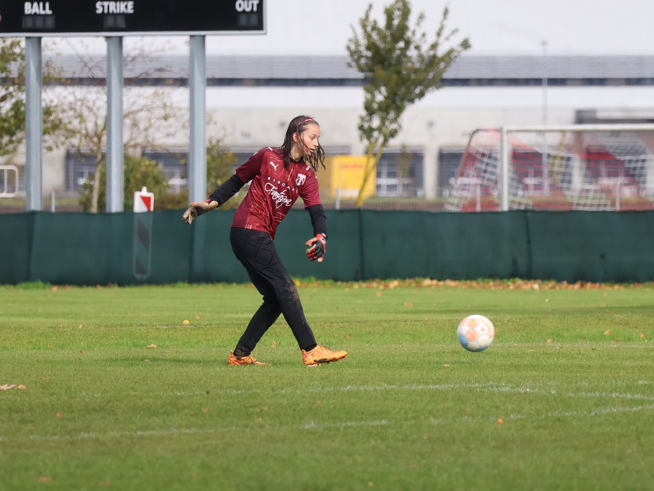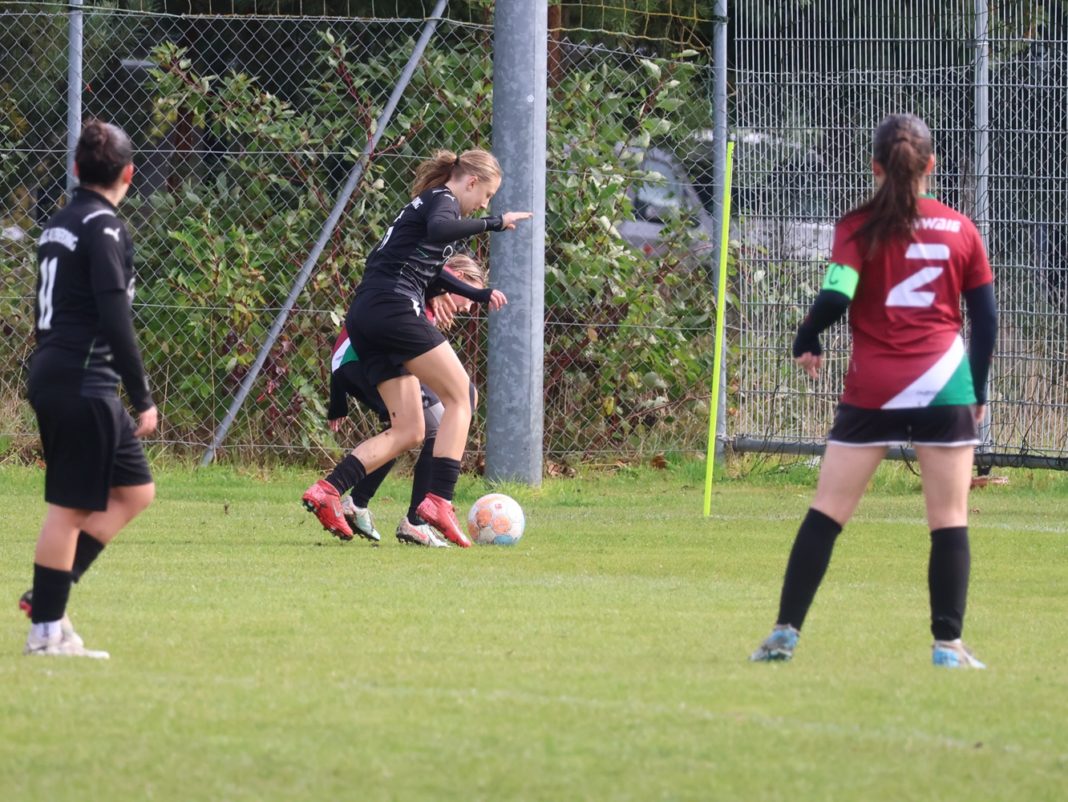 Zur Halbzeit stand es „nur“ 1:0. Torhüterin Jennifer Berger erlebte einen ruhigen Vormittag – ihre zehn Ballkontakte kamen allesamt durch Rückpässe, meist von Marie Jackisch.