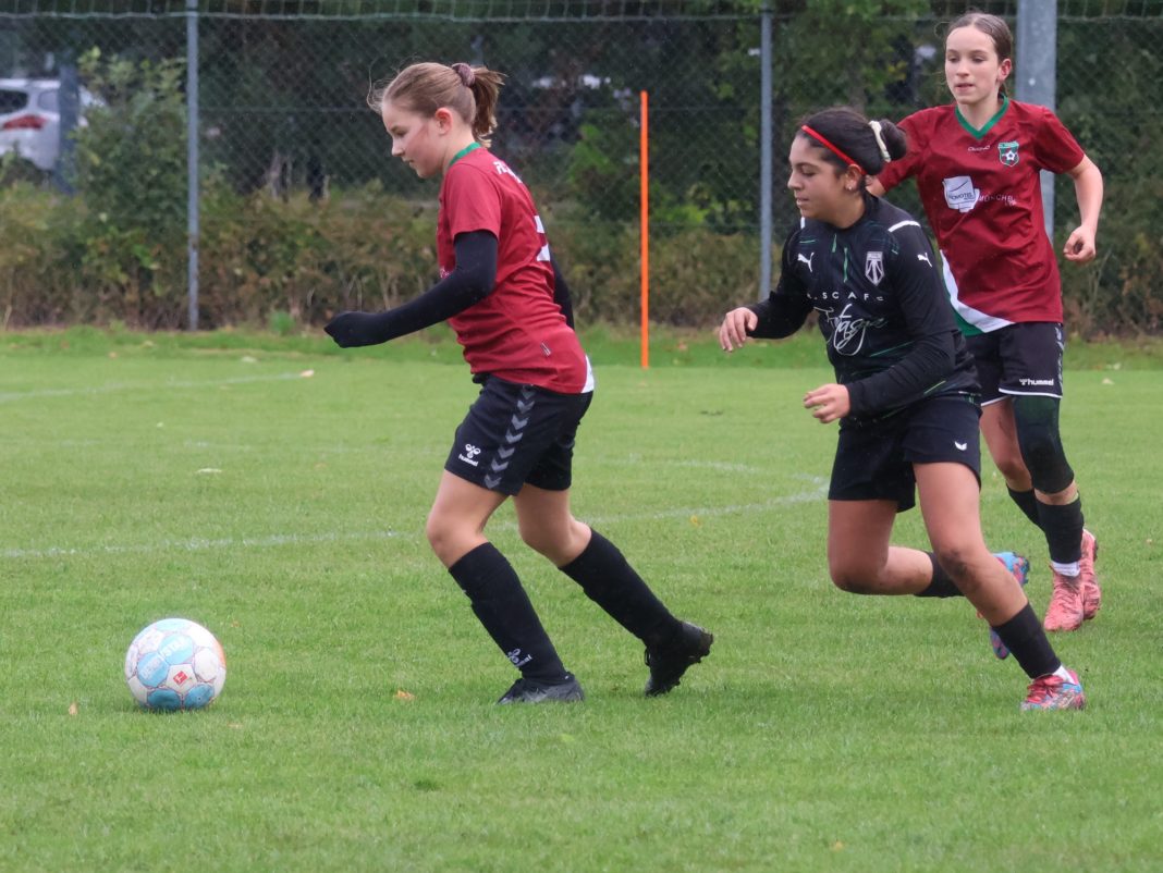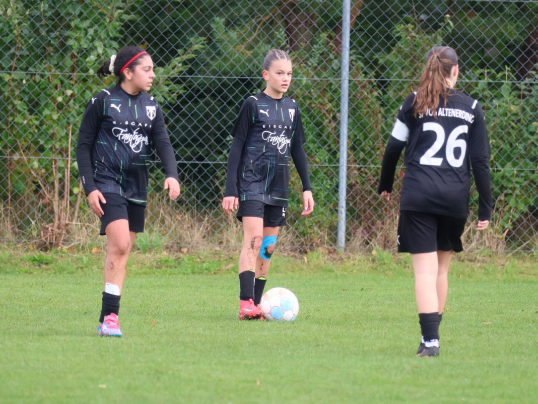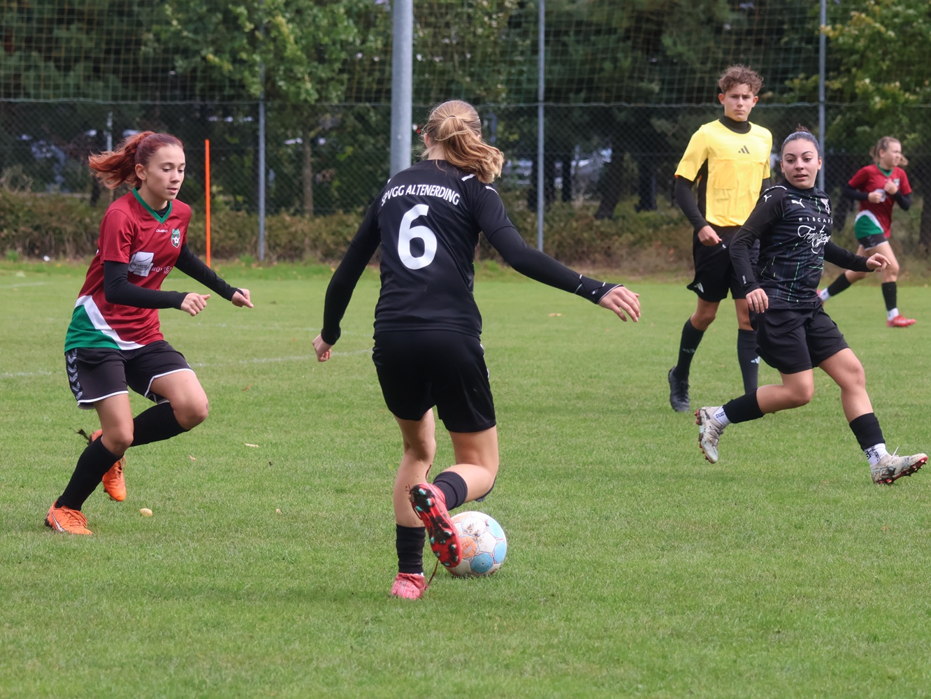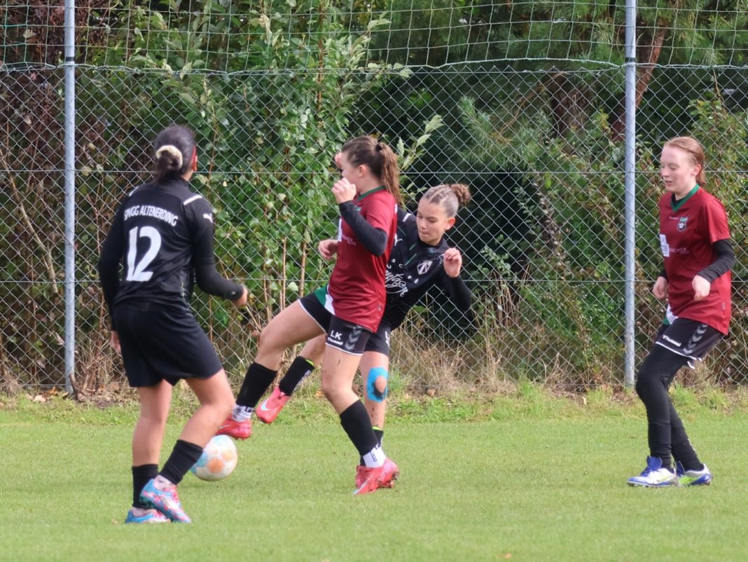 Von Beginn an spielte nur eine Mannschaft: Altenerding dominierte das Geschehen und kombinierte sich sehenswert bis zum Strafraum. Doch dort fehlte zunächst die Präzision. Hektische Abschlüsse und Rückpässe zum Torwart prägten die Anfangsphase. In der neunten Minute setzte Julia Mückel ein erstes Ausrufezeichen mit einem Fernschuss knapp am linken Pfosten vorbei. Kurz darauf setzte sich Lilli Kapsner erneut stark über die linke Seite durch, legte quer auf Mückel, deren Abschluss geblockt wurde. Hünes Öksüz kam im Nachschuss zum Zug, verfehlte jedoch das Tor.