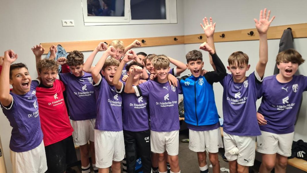 Mit einem souveränen 3:0- Auswärtssieg präsentierten sich die Altenerdinger C2-Recken von ihrer besten Seite und zeigten so dem Gastgeber aus Schwaig die Grenzen auf. Schon in den ersten fünf Spielminuten war zu erkennen, dass an diesem Tag keine Geschenke verteilt werden. Schwaig spielte von der ersten Minute an auf Augenhöhe mit und bot den Semptstädtern über die gesamte Spielzeit Paroli. Der hohe Unterhaltungswert der Partie war nicht zuletzt den sehenswerten Doppelpässen und Kombinationen beider Mannschaften geschuldet. Den ersten Fingerzeig, welche Mannschaft heute das bessere Ende für sich haben würde, sahen die Zuschauer in der siebten Spielminute. Mittelfeldspieler Vincent Hensel ließ zunächst zwei Gegenspieler gekonnt ins Leere laufen, sah im Augenwinkel wie Theo Ziemann startete und schickte mit einem sehenswerten Chip-Ball über die Abwehrkette das Leder auf die Reise. Mustergültig übernahm Ziemann hinter den gegnerischen Verteidigern das Spielgerät in Empfang und stürmte über rechts auf den Schwaiger Schlussmann zu. Abgebrüht, aus vollem Lauf, setzte der Torjäger die Pille unten rechts im Netz. Da war er, er hart verdiente Führungstreffer. 1:0 für die Gäste aus Altenerding. Die hart umstrittene Partie, die durch den Führungstreffer etwas ruppiger wurde, nahm weiter ihren Lauf. Obwohl beide Mannschaften sich ins Zeug legten, ließ sich bis Ende der ersten Halbzeit kein zählbarer Erfolg mehr vermelden. Erschöpft gingen beide Teams nach Abpfiff der ersten Halbzeit in ihre Kabine, um sich dort neu zu sortieren und wieder zu Kräften zu kommen. Den bessern Pausentee hatten jedoch die Spieler aus Altenerding mitgebracht. In der 55. Spielminute wurde den Veilchen ein Freistoß nähe der Mittellinie zugesprochen. Hellwach und abgezockt stoppte Enis Veseli ruckzuck das Leder mit der Hand, warf Theo ein auffordernden Blick zu und führte in einer fließenden Bewegung direkt den Freistoß aus. Ehe sich der Gegner versehen konnte, zirkelte der Ball schon über ihren Köpfen hinweg zu Ziemann, der das Spielgerät bereits erwartete. Nach der gekonnten Ballannahme setzte sich der Stürmer gegen einen hinterhereilenden Abwehrspieler durch und erhöhte gekonnt zum 2:0, was mit einem begeisternden Jubel der eigenen Mannschaft und deren Zuschauer quittiert wurde. Die weiteren Spielminuten waren dann jedoch von einer Schwächephase der Veilchen geprägt, als hätten sie bereits ihr ganzes Pulver verschossen. So gelang es Altenerdinger C2- Junioren über mehrere Minuten nicht, dass Leder gezielt aus der eigenen Hälfte herauszuspielen. Nur langsam fanden die Gäste zu ihrer alten Stärke zurück und konnten so das Spielgeschehen wieder in das Mittelfeld verlagern. Ein Freistoß in der eigenen Spielhälfte setzte der Partie dann in der 70. Spielminute den Stempel auf. David Pompei bewies ein scharfes Auge, legte sich das Leder zurecht und beförderte mit einem weiten Chip-Ball das Spielgerät in die gegnerische Hälfte. Ein Happen für den wieselflinken Ziemann. Abermals schnappte er sich das Spielgerät, umspielte die gegnerische Abwehr und erlöste sein Team mit seinem Hattrick zum 3:0-Endstand. Außer Rand und Band bejubelten die C2-Recken den dritten Treffer und der Torschütze riss sich vor Freude sein Trikot vom Leib, was direkt mit einer gelben Karte vom Unparteiischen geahndet wurde. Aber das konnte die Euphorie auch nicht mehr bremsen, denn die Freude über den Erfolg überwog. Erschöpft aber glücklich, mit fetter Beute und 3 Punkte im „Turnsackl“ trat man die Heimreise an. Das Trainerduo Böttcher/Heidler lobten anschließend in der Kabine das hohe Engagement und den Spielwitz ihrer Mannschaft.