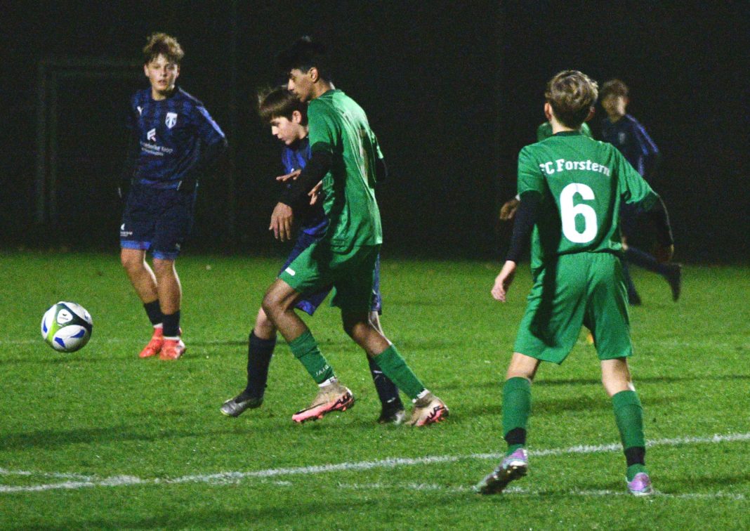 Bei der Begegnung zwischen den C2-Junioren der Spvgg Altenerding und den Gästen aus Forstern war für die Veilchen nichts zu holen, denn die Gäste erwiesen sich als das bessere Team, so dass der 3:0-Erfolg des FCF den Kräfteverhältnissen entsprach. Zu Beginn der Partie zeigten sich die Hausherren aber von ihrer kämpferischen Seite, so dass die Zuschauer eine ziemlich ausgeglichene Partie zu sehen bekam. Beide Mannschaften legten sich gehörig ins Zeug und vereitelten so jegliche Torchancen. Der genaue Betrachter konnte jedoch im Laufe der Begegnung erkennen, dass der ältere Jahrgang aus Forstern, unbeeindruckt der Spieldauer, den frischeren und eloquenteren Fußball spielte. Dieser Vorteil zeigte sich das erste Mal in der 30. Spielminute. Zwar konnte Torhüter Lukas Busse einen Torschuss zunächst mit einer Parade noch gekonnt von der Linie kratzen, doch der Nachschuss zappelte unmittelbar danach, links unten im Netz und brachte die Führung für Forstern. Die Halbzeitpause nutzte Trainer Heidler das Spielsystem umzustellen, um im Mittelfeld stabiler zu agieren. Nichtsdestotrotz kam Forstern immer besser ins Spiel und drängten den Gastgeber immer mehr in deren eigene Hälfte zurück. Altenerding kam immer weniger in die gegnerische Hälfte und immer mehr ins Schwimmen. Trotzdem gelang es den Veilchen, zunächst keinen weiteren Treffer zuzulassen. Erst fünf Minuten vor Spielende bekam Abwehrspieler Lukas Djordjevic einen Schuss auf das Tor nicht unter Kontrolle und stolperte mit einem Handspiel das Spielgerät unglücklich ins eigene Netz. Glück im Unglück, denn der Unparteiische verweigerte dem Eigentor die Anerkennung, entschied aber aufgrund des Handspieles auf Elfmeter, so dass die Freude über den Pfiff des Referees nur von kurzer Dauer war, denn die Gäste nutzten den Strafstoß zum vorentscheidenden zweiten Treffer. Ein letztes Aufbäumen der Semptstädter blieb leider erfolglos und wurde von Forstern mit dem 3:0 quittiert. Wie beim ersten Gegentor prallte das Leder vom Altenerdinger Schlussmann ab und dem Gegner direkt vor die Füße, der sich nicht zweimal bitten ließ und erneut erfolgreich, diesmal zum 3:0-Endstand für seine Farben abstaubte. Enttäuscht und mit gesenkten Haupt ging es anschließend zurück in die Kabine und jetzt liegt es am Trainerteam Böttcher/Heidler das Team wieder aufzubauen, um in den nächsten Spielen weitere Punkte auf die Habenseite zu bringen.