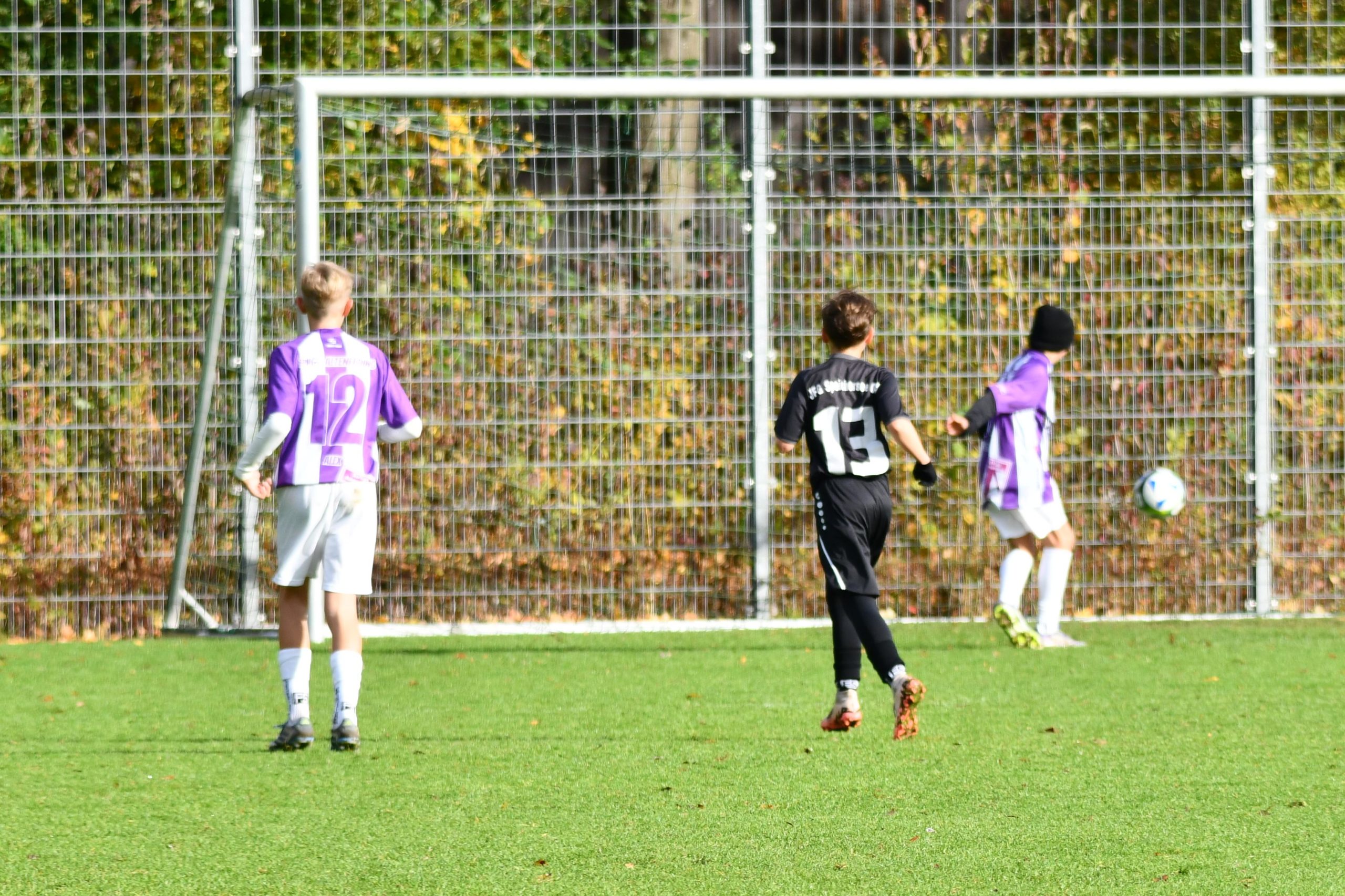 In der zweiten Halbzeit schwanden dann bei den Gästen langsam die Kräfte. Und so ergaben sich mehr Räume für die Jungs aus Altenerding. Fünf Minuten nach Wiederbeginn presste man wieder energisch, was dem Torhüter der Gäste zu einem Verlegenheitspass zwang. Emilio Pomaroli schaltete blitzschnell, nahm das Leder im Zweikampf auf und schoss zum 5:0 ein. Kaum hatten die Gäste ihren Anstoß ausgeführt, ging es wieder Richtung der Gäste. Diesmal war es Lewis Habel, der mit einem Topspeed (Liga-Bestwert verdächtig) drei Gegenspieler überlief und dem Schlussmann mit einem trockenen Abschluss keine Abwehrmöglichkeit ließ und auf 6:0 erhöhte. Die Gäste hatten mittlerweile große Probleme, sich aus der Umklammerung der Altenerdinger zu lösen. Man spielte den Ball öfters seitenverlagernd und dann ging es schnell. Lewis Habel spielte einen starken Ball tief auf Léo Dasch, der alleine vor dem Tor vom heranstürmenden Abwehrspieler abgeräumt wurde. Den fälligen Freistoß schnappte sich Léo Dasch und verwandelte direkt zum 7:0. Und noch merkte man den Jungs den Torhunger an. Nach 50 Minuten kamen die Gäste zum ersten und einzigen gefährlicheren Torabschluss, doch Moritz Hartlmaier hatte den Ball sicher. Kurze Zeit darauf war es Lenny Pescke, der Léo Dasch steil schickte, dieser legte nochmals auf Mateo Rezvan quer. der dann auf 8:0 erhöhte. In der 54. Minute legte Mateo Rezvan einen hohen Ball im Strafraum rechts raus auf Alex Montag, der vor dem Torwart den Ball zum 9:0 unter die Latte legte. Den Schlusspunkt im Torfestival setzte Léo Dasch. Als Lewis Habel beim Einwurf schnell schaltete und auf den Torjäger warf, tanzte der Angreifer zwei Gegenspieler aus und machte mit seinem abschließenden Tor den zweistelligen Sieg perfekt.