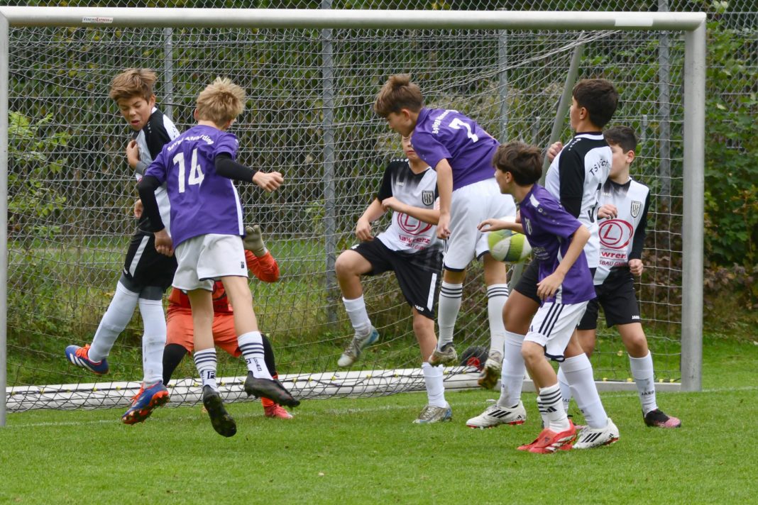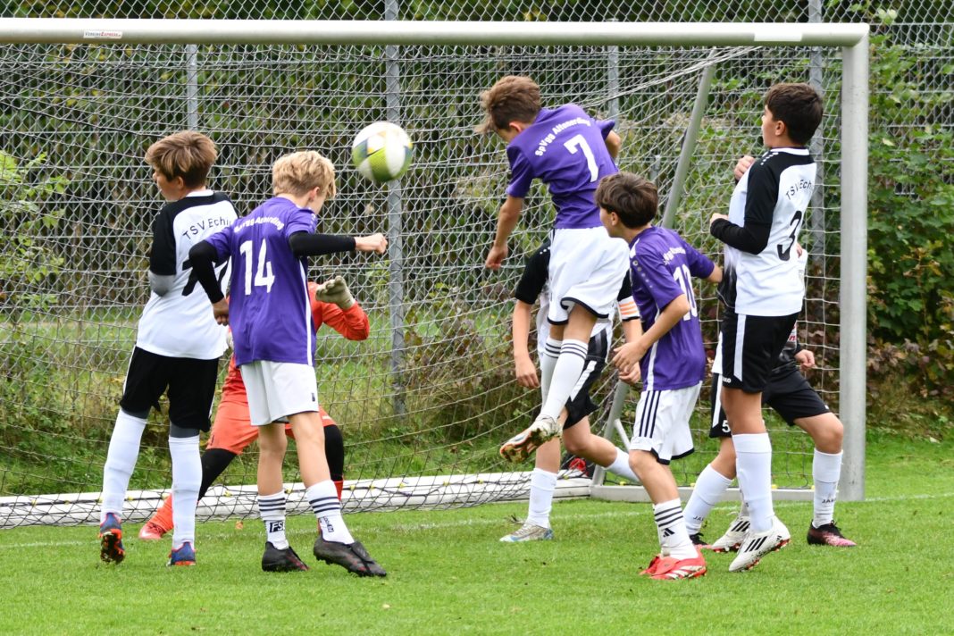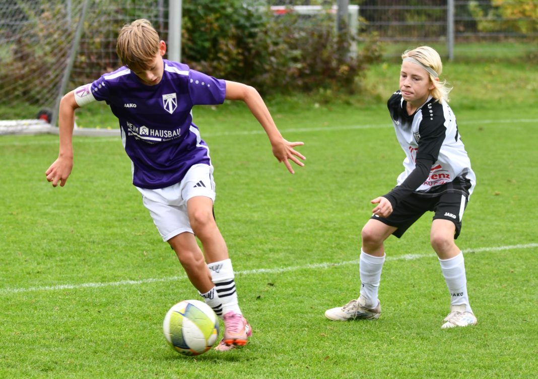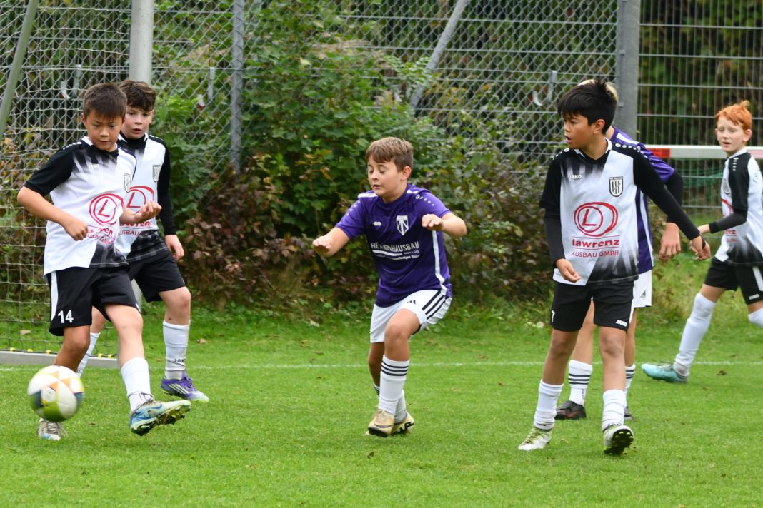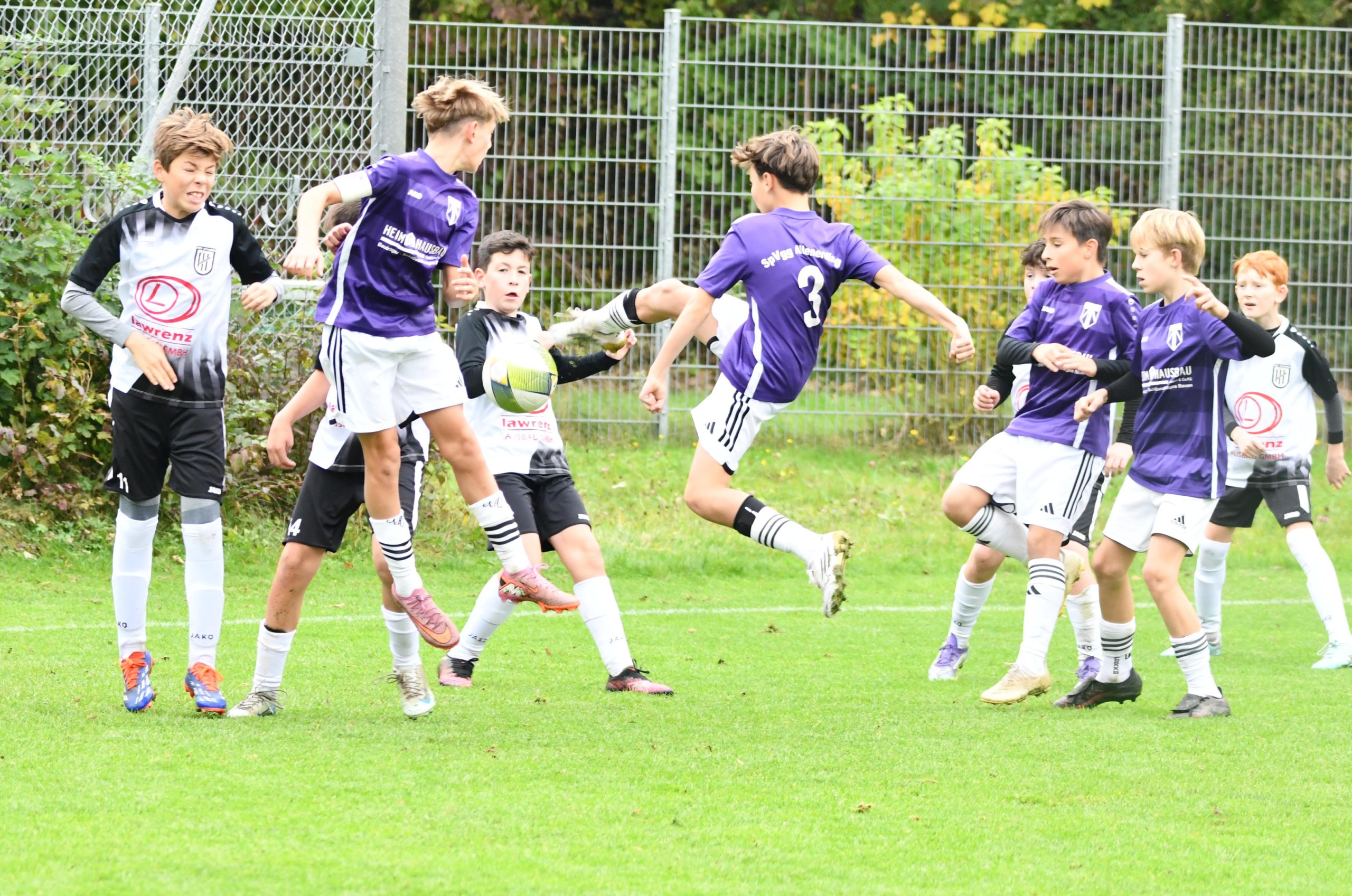Bei lauwarmen Herbstanfangswetter versammelt sich die Wilde 13-Familie, um einer weiteren Darbietung unser jungen Zauberfüße beizuwohnen – dieses Mal gegen den TSV Eching, gegen den in den Vorjahren jeweils harte Kämpfe ausgetragen wurden. Einzig Standardchronist und Edelfeder Pit Kugler fehlte entschuldigt, so dass wieder das gemeine Schreibvolk dem Spielverlauf zu folgen hatte (und diese Pflicht ohne jegliche KI-Unterstützung anzugehen gedachte). Letztlich gab es viel zu notieren, denn die Gastgeber feierten einen 8:0-Kantersieg und konnte die Tabellenführung eindrucksvoll untermauern. Und so sollten die jungen Veilchen bereits in den ersten sechs Minuten ein Chancenfeuerwerk abbrennen: In Minute 1 bereits eine Halbchance nach einem Eckball, in Minute 3 eine Riesenchance durch Tobi Felsner (und nach dem anschließenden Eckball durch Valentin Kugler), und in Minute 6 eine Riesenchance durch Marco Ebert nach einem formidablen Flankenlauf von Kapitän Michi Melissourgos auf der linken Seite. Auch die nächsten 10 Minuten waren von Einbahnstraßenfussball Richtung Echinger Tor geprägt. Ruhig und überlegt, oft initiiert durch die Regisseure Philipp Feuker und Marco Ebert wurde Angriff auf Angriff nach vorne getragen. Das Geschehen spielte sich nahezu ausschließlich in der gegnerischen Hälfte ab. In Minute 17 dann die nächste Großchance: Nach einem tollen Dribbling des quirligen Marco Ebert, passte dieser auf Sturmführer Paul Schiwietz, der elegant auf Tobi Felsner weiterleitete, der aber nur den Pfosten avisierte. Kurz darauf eine weitere Schusschance von Marco Ebert, aber es sollte beim 0:0 bleiben und beim Publikum machte sich erste Unruhe breit. Doch nur drei Zeigerumdrehungen später sollte der ersehnte Führungstreffer fallen: Nach einem Flankenlauf am rechten Flügel durch Emil Fernandez Jackisch, gelangte der Ball zu Marco Ebert, der kurz auf Philipp Feuker ablegte. Dessen harter Linksschuss konnte vom starken Gästetorhüter nicht aufgehalten werden. Nachdem weitere Großchancen von Noah Memed und Michael Melissourgos ungenutzt blieben, blieb es dann dem inzwischen eingewechselten linken Flügelflitzer Andi Neumann vorbehalten, mit einem strammen Schuss mit dem schwachen rechten Fuß – genau das hatte Trainer Rene Feuker eingefordert – den 2:0 Halbzeitstand zu erzielen – ein Ergebnis, das für die Gäste aus Eching sehr schmeichelhaft war. Auch die ersten 10 Minuten der zweiten Halbzeit wurden klar durch die Wilde 13 dominiert: Eine weitere Riesenchance durch Tobi Felsner, zwei Schusschancen für Andi Neumann und schließlich ein Lattenknaller des stark aufspielenden Simon Kreuzpaintner sollte aber alle nicht zum erlösenden 3:0 führen. Dies sollte dann Matheo Hulm, der wieder stark verteidigte, vorbehalten bleiben: Der aufgerückte Abwehrspieler kam nach einer Ecke von Noah Memed zum Kopfball und sorgte unhaltbar für die Vorentscheidung. Nun war der Bann gebrochen und eine Doppelpack von Felsner ließ den Vorsprung auf 5:0 anwachsen. Beim 4:0 profitierte er von einer Vorlage von Andi Neumann und dem fünften Treffer ging eine schöne Flanke von Feuker voraus. Und jetzt fielen die Tore wie reife Früchte – erst ein Eigentor nach scharfer Hereingabe von Andi Neumann, dann zwei klassische „Mittelstürmertore“ durch Paul Schiwietz führten um 8:0-Endstand. Fast hätte sich Abwehrchef Muaaz Mohammed mit einem Fernschuß noch in die Torschützenliste eingetragen, doch leider verfehlte der Ball knapp sein Ziel. Nach dem Spiel zogen auch die Verantwortlichen ein positives Fazit, auch wenn die Chancenverwertung weiterhin ein großes Manko der Wilden 13 darstellt. Mit dem FC Schwaig und dem FSV Steinkirchen warten zum Ende der Hinrunde noch zwei Gegner auf unsere jungen Talente, gegen die noch eine deutliche Leistungssteigerung von Nöten sein muss.