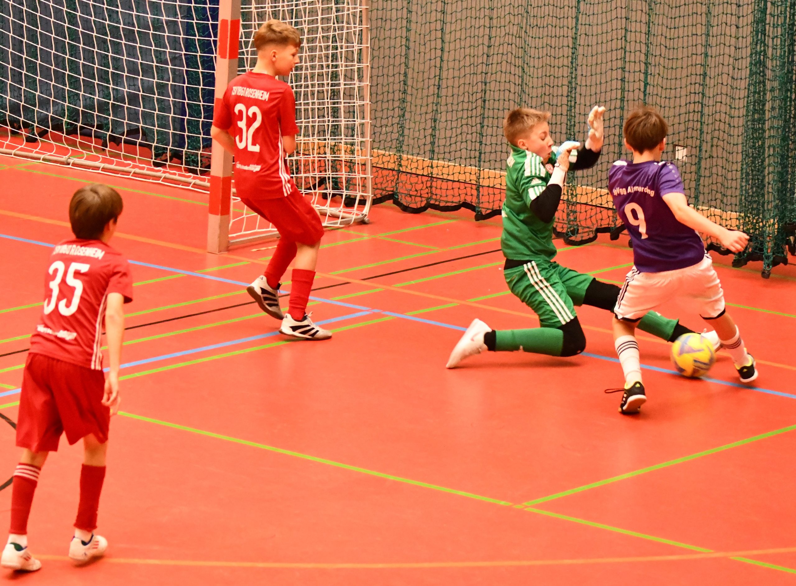 Kurios wurde es anschließend abseits des Spielfeldes: Bereits während des Turniers mussten mehrere Partien unterbrochen werden, da Wasser von der Hallendecke auf das Spielfeld tropfte und der Boden immer wieder gewischt werden musste. Mit zunehmender Dauer verschärfte sich das Problem, sodass sich Ausrichter, BFV-Funktionäre und Trainer vor Beginn der K.-o.-Spiele berieten. Die Vernunft siegte: Um das Verletzungsrisiko für die jungen Spieler auszuschließen, wurde die Veranstaltung vorzeitig abgebrochen. Damit bleibt offen, welcher Verein den Bezirk Oberbayern beim bayerischen Finale vertreten wird. Fest steht lediglich, dass die acht Viertelfinalisten zeitnah einen neuen Termin benötigen, um den oberbayerischen Hallenmeister zu ermitteln. Der BFV steht nun unter Zugzwang, denn bereits für den 28. Februar ist das Landesfinale in Arnsdorf (Niederbayern) angesetzt. Trotz des frühen Ausscheidens fiel das Fazit von Trainer René Feuker sachlich und konstruktiv aus: „Man hat gesehen, dass wir mithalten können. Unser größtes Manko war die fehlende Zweikampfhärte. Da müssen wir körperlich zulegen. Trotzdem fahren wir mit erhobenem Kopf nach Hause – und ich hoffe, dass dieses Turnier für meine Jungs ein wichtiger Lernprozess war.“ Unterm Strich bleibt: Ergebnislos ausgeschieden, aber keineswegs chancenlos. Die D-Junioren der SpVgg Altenerding haben sich teuer verkauft – auch wenn ihnen der Weg zum Landesfinale diesmal verwehrt blieb.