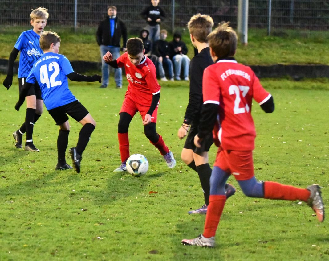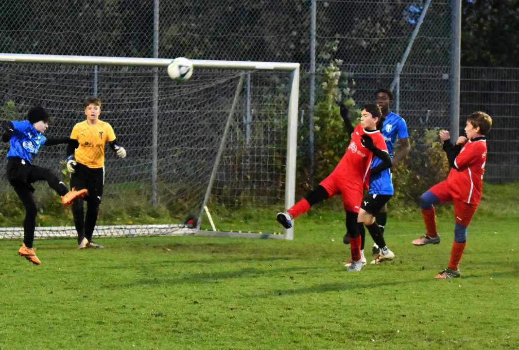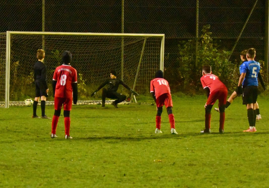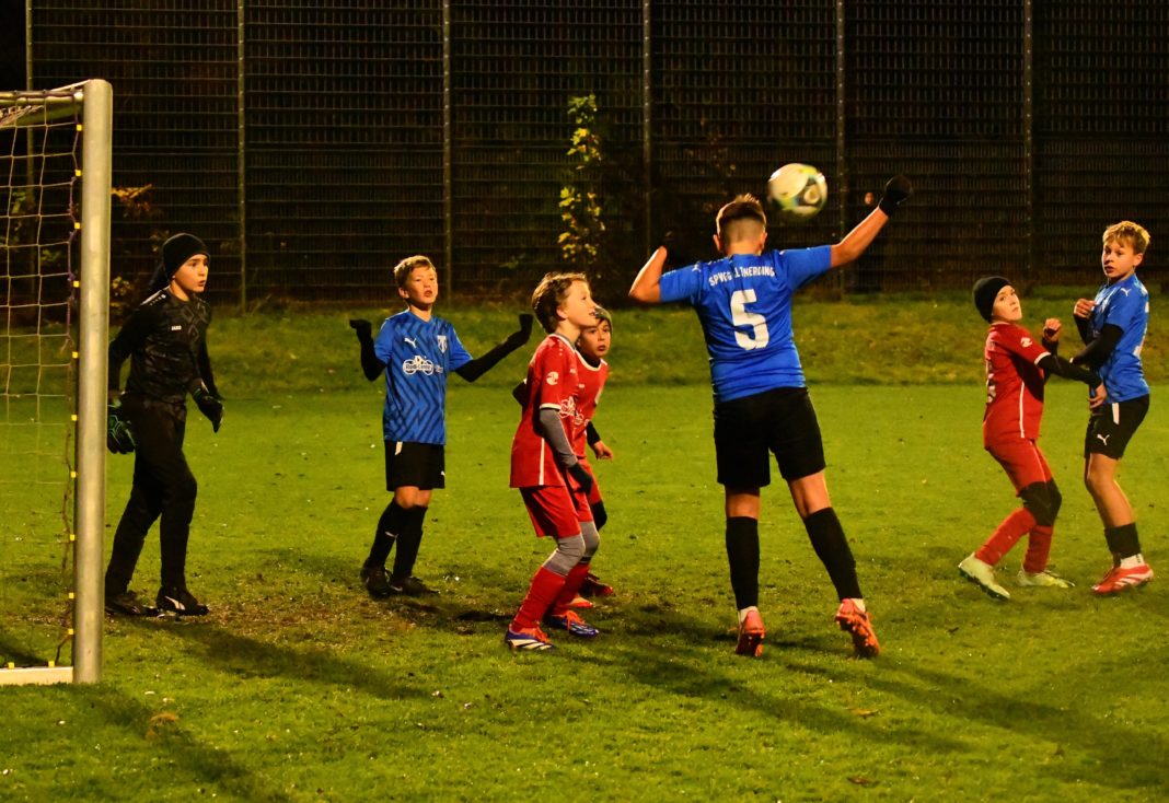 Unter Flutlicht auf Platz 5 entwickelte sich von Beginn an ein packendes und intensives Spiel zweier ebenbürtiger Mannschaften, in dem Kleinigkeiten den Ausschlag geben sollten. Der junge Schiedsrichter hatte dabei von der ersten Minute an alle Hände voll zu tun.