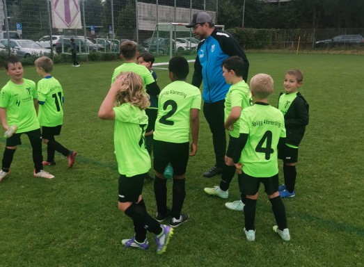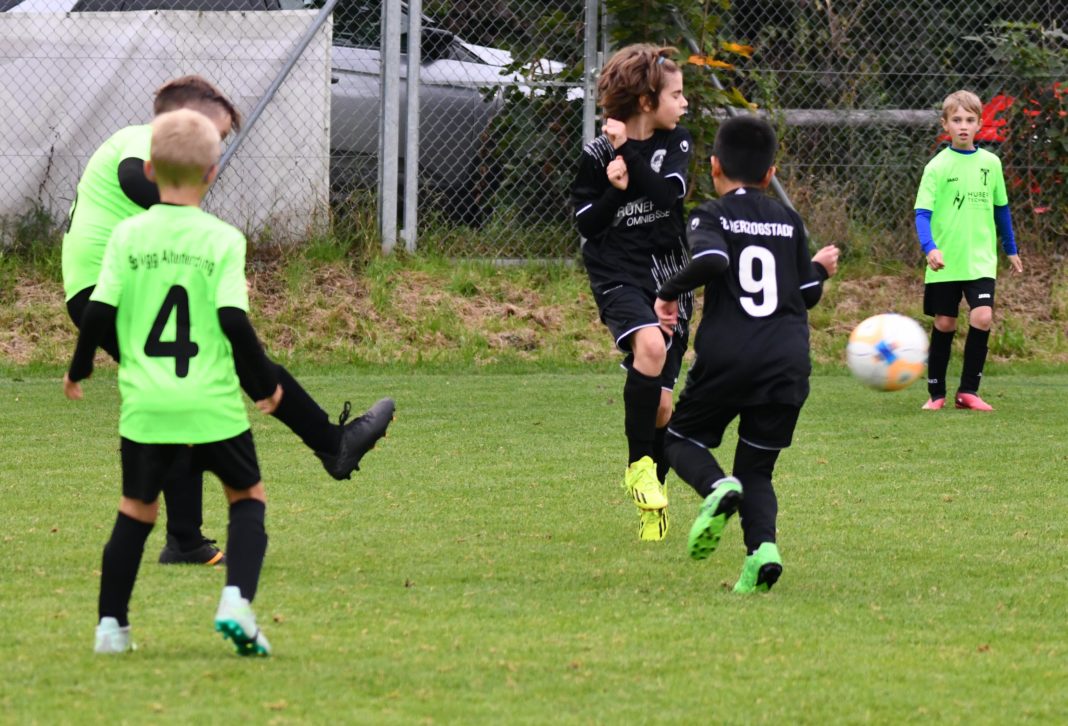Bereits am zweiten Spieltag kam es zum heiß erwarteten Derby zwischen den E5-Junioren der SpVgg Altenerding und dem Rivalen vom FC Herzogstadt. Nach dem überzeugenden 13:8-Auftakterfolg in Dorfen wollte das Team von Trainer Markus Dindorf unbedingt nachlegen und sich an die Tabellenspitze schieben. Doch auch die Herzogstädter waren mit Rückenwind in die Saison gestartet – die Bühne war bereitet für ein packendes Duell. Erding erwischte den besseren Start und ging in der sechsten Minute nach intensiver Anfangsphase in Führung. Altenerding tat sich zunächst schwer, den eigenen Rhythmus zu finden, setzte aber immer wieder gefährliche Konter über Philipp Ranga, der mit wuchtigen Abschlüssen am starken Gästekeeper scheiterte. Die gegnerische Abwehr wirkte lange unüberwindbar – bis Kapitän Damian Dindorf kurz vor Ende des ersten Viertels mit einem Traumtor ins rechte obere Kreuzeck den Bann brach und den Ausgleich erzielte. Mit neuem Selbstvertrauen startete Altenerding furios in das zweite Viertel. Die Jungs spielten sich wie entfesselt in einen regelrechten Rausch. Philipp Ranga krönte seine Leistung mit einem Doppelpack in der 21. und 24. Minute. Auch die Defensive rund um Abwehrchef Elias Langer stand felsenfest und ließ keinen weiteren Treffer der Gäste zu. Mit einer verdienten Führung ging es in die Halbzeitpause. Nach dem Seitenwechsel blieb Altenerding torhungrig: Ahmed Horozovic erhöhte mit einem Doppelschlag in der 38. und 40. Minute auf 5:1 und sorgte damit für die Vorentscheidung. Im letzten Viertel schalteten die Hausherren einen Gang zurück, sodass der FCH noch zu zwei Anschlusstreffern kam. Am verdienten Heimsieg änderte das jedoch nichts mehr. Direkt nach dem Abpfiff feierte die Mannschaft ausgelassen mit Trainer und Eltern – „Hier regiert die SVA!“ hallte es über das Trainingsgelände. Beim von den Eltern liebevoll organisierten Verkaufsstand ließen die Jungs den Abend bei kühlen Getränken und guter Stimmung gemeinsam ausklingen.