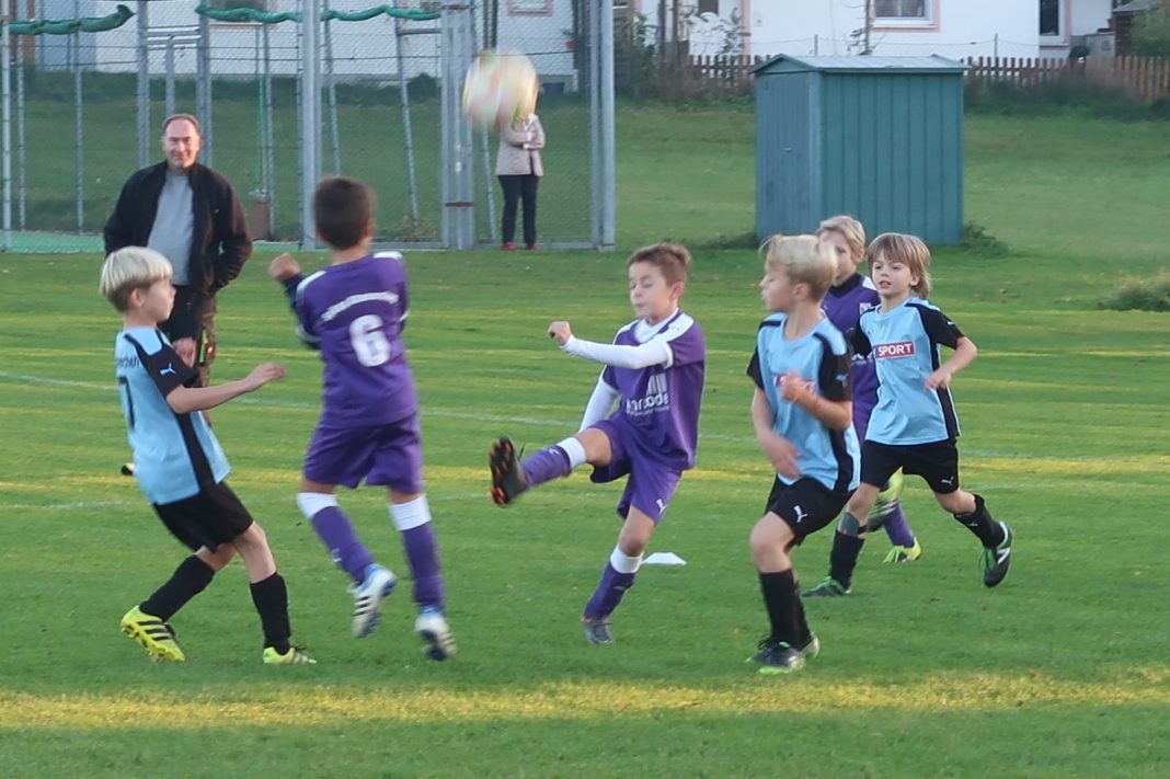 Am letzten Spieltag der Herbstrunde durften die F2-Junioren zu der spielstarken F1 der SG Reichenkirchen/Fraunberg reisen und mit einer überragenden Mannschaftsleistung gegen die Hausherren des älteren Jahrgangs gaben sie mit einem tollen 3:3-Remis und damit eines ihrer bisher besten Spiele, erneut ihre Visitenkarte im Landkreis ab. Die Röschke/Pompei/Kieweg-Truppe trat im Flutlichtspiel mit folgender Besetzung an: Im Tor: „Katze“ Til Jandl, die Abwehr mit Frederik Röschke, Kapitän Liam Michel u. Basti Reiner, im Mittelfeld Gabriel Petkos, Johannes Kieweg u. Lennox Höhne sowie im Sturm: Korbinian Irl, David Pompei und Anton Pfeifer. Symptomatisch für die Veilchen gerieten diese bereits in der vierten Minute durch einen Flachschuss, der vom linken Innenpfosten ins Tor sprang, unglücklich in Rückstand. Nachdem erneut die Gastgeber eine Minute später über links zu einer weiteren Chance kamen, folgte eine Zeigerumdrehung später die Antwort der SpVgg. Mit einer schönen Kombination von Frederik Röschke auf Lennox Höhne, startete dieser über den rechten Flügel durch und schloss überlegt mit einem Schuss ins lange Eck zum 1:1-Ausgleich ab. In der 10. Minute kam es erneut zu einer Riesenchance der SG, aber Keeper Til Jandl klärte durch seine schnelle Reaktion und gutes Herauslaufen die Situation. Es entwickelte sich auf beiden Seiten eine packende Partie, in der sich beide Teams keine Verschnaufpause gönnten. So war es Verteidiger Liam Michel in der 12. Minute, der es, schön aufgerückt, mit einem Distanzschuss versuchte. Dann eroberte sich Stürmer David Pompei geschickt freilaufend den Ball, doch sein Schuss wurde im letzten Moment geblockt, ehe dann auf der anderen Seite bei einer scharfen Ecke wieder Jandl gefordert war, diese Prüfung mit einer gekonnten Faustabwehr jedoch glänzend bestand. Im weiteren Verlauf der ersten Hälfte kam es immer wieder zu Chancen auf beiden Seiten, in denen zum einen, das Altenerdinger Mittelfeld um Gabriel Petkos, Johannes Kieweg und Höhne sehenswerte Kombinationen zeigten und zum anderen sich die erneut extrem starke Defensive, speziell Röschke und Michel hervor taten, indem sie alles abräumten, was nur annähernd das eigene Gehäuse anvisierte. Eine Minute vor der Pause zeigten die Veilchen einen Angriff aus dem Lehrbuch. Sebastian Reiner bediente links Höhne, dieser startete über den Flügel Richtung Strafraum, in dem Kieweg und Korbinian Irl aufgerückt waren. Höhne überlistete den herauseilenden Schlussmannmit einem geschickten Lupfer, sodass Kieweg zentral lauernd nur noch die Kugel zur 2:1-Führung einschieben musste. Die Gastgeber waren sichtlich beeindruckt von der taktischen Leistung der SpVgg, drängten aber nach Wiederbeginn mit ihren beiden starken Außenstürmern auf den Ausgleich. Aber ein wuchtiger Weitschuss in der 21. Minute und weitere Chancen im Minutentakt brachten glücklicherweise nichts Zählbares für die Hausherren ein. Ein ums andere mal war es die geschlossene Mannschaftsleistung, die mit Geschick und Kampfgeist dagegen hielt. Besonderen Lob der Trainer verdienten sich, neben dem überragenden Schlussmann Jandl, heute auch Höhne und Petkos, welche die SG-Stürmer regelmäßig im Mittelfeld abkochten. Sieben Minuten nach Wiederbeginn waren dann wieder die Semptstädter am Zug und mit einem schönen Pass schickte Höhne an der rechten Linie Kieweg auf die Reise. Dieser setzte sich durch und schoss aus spitzen Winkel hoch über den Schlussmann hinweg zum 3:1 ins lange Eck ein. Leider gelang es den Veilchen nicht, die Führung über die Zeit zu bringen. Im letzten Viertel der Begegnung fehlten dann doch in dem so laufintensiven Spiel gegen die älteren Kontrahenten die nötigen Körner und so kamen die Gastgeber in den letzten beiden Spielminuten noch zum Ausgleich. Mit einer sehenswerten Bilanz von drei Siegen, einem Unentschieden und nur zwei Niederlagen gegen ausschließlich F1- Mannschaften verabschiedet sich die SpVgg somit in die Hallensaison, in der sie wieder mit Leidenschaft und Liebe zum Fußball, die Farben von Altenerding mit Stolz vertreten wird.
