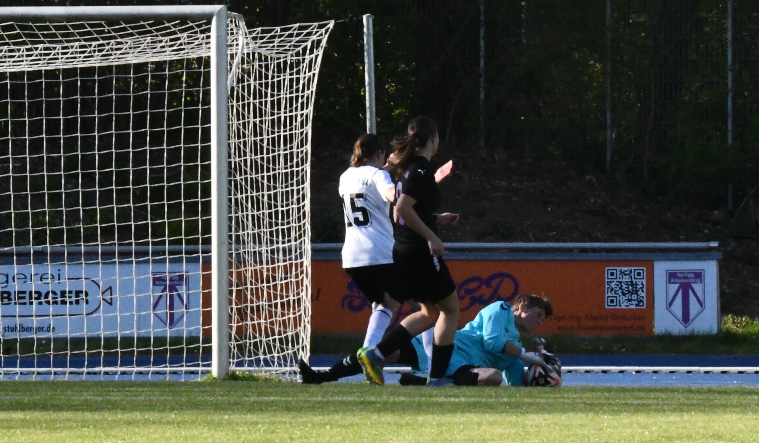 Doch in der 73. Minute war das Glück erneut auf Seiten der Gastgeberinnen: Nach einer Flanke kam eine SG-Akteurin volley zum Abschluss. Der Ball senkte sich gefährlich auf das Tor, landete jedoch am Querbalken und sprang zurück ins Feld. Katharina Hartmann reagierte blitzschnell, sicherte das Spielgerät und wurde im Anschluss unfair attackiert – Freistoß für Altenerding.