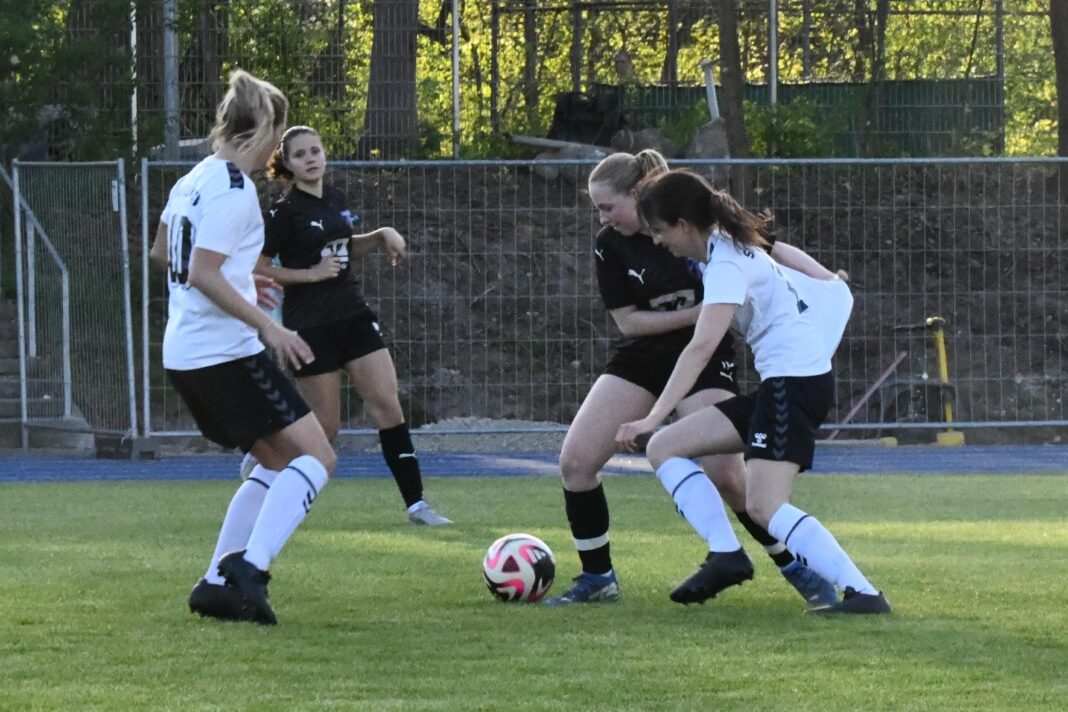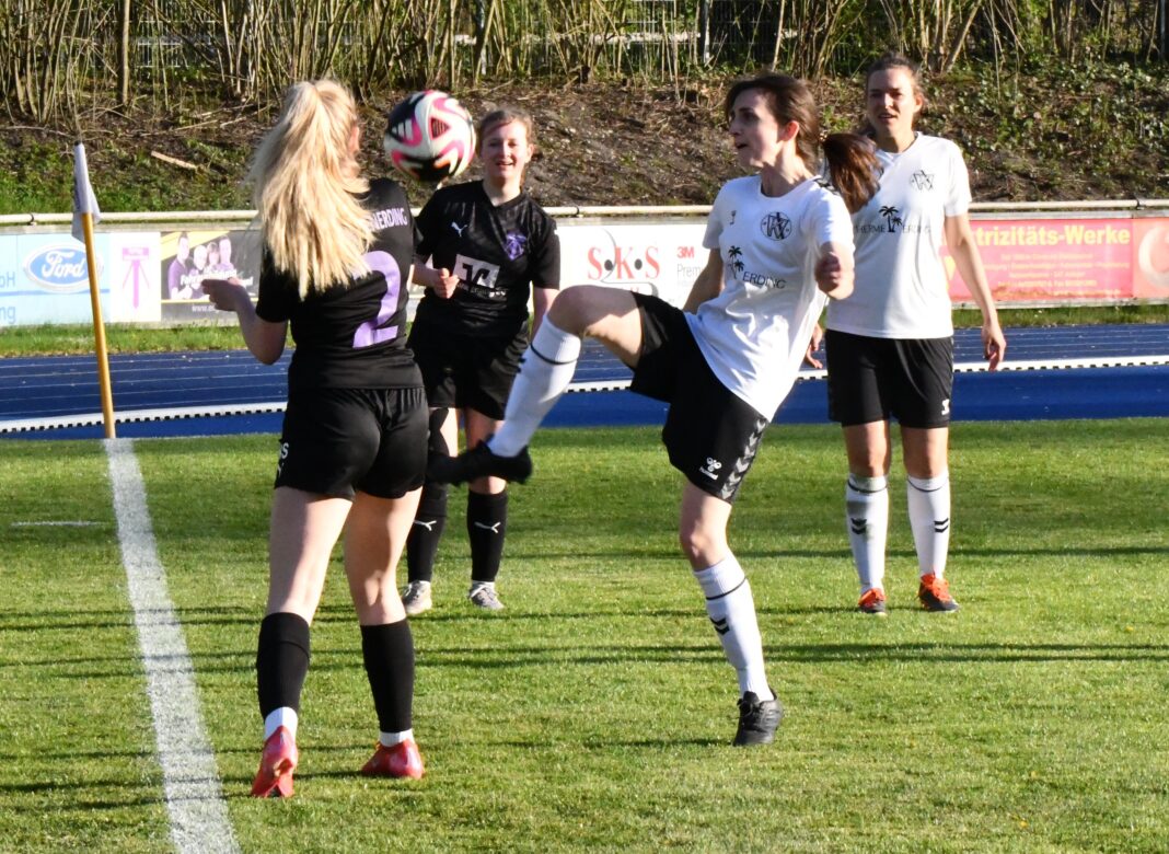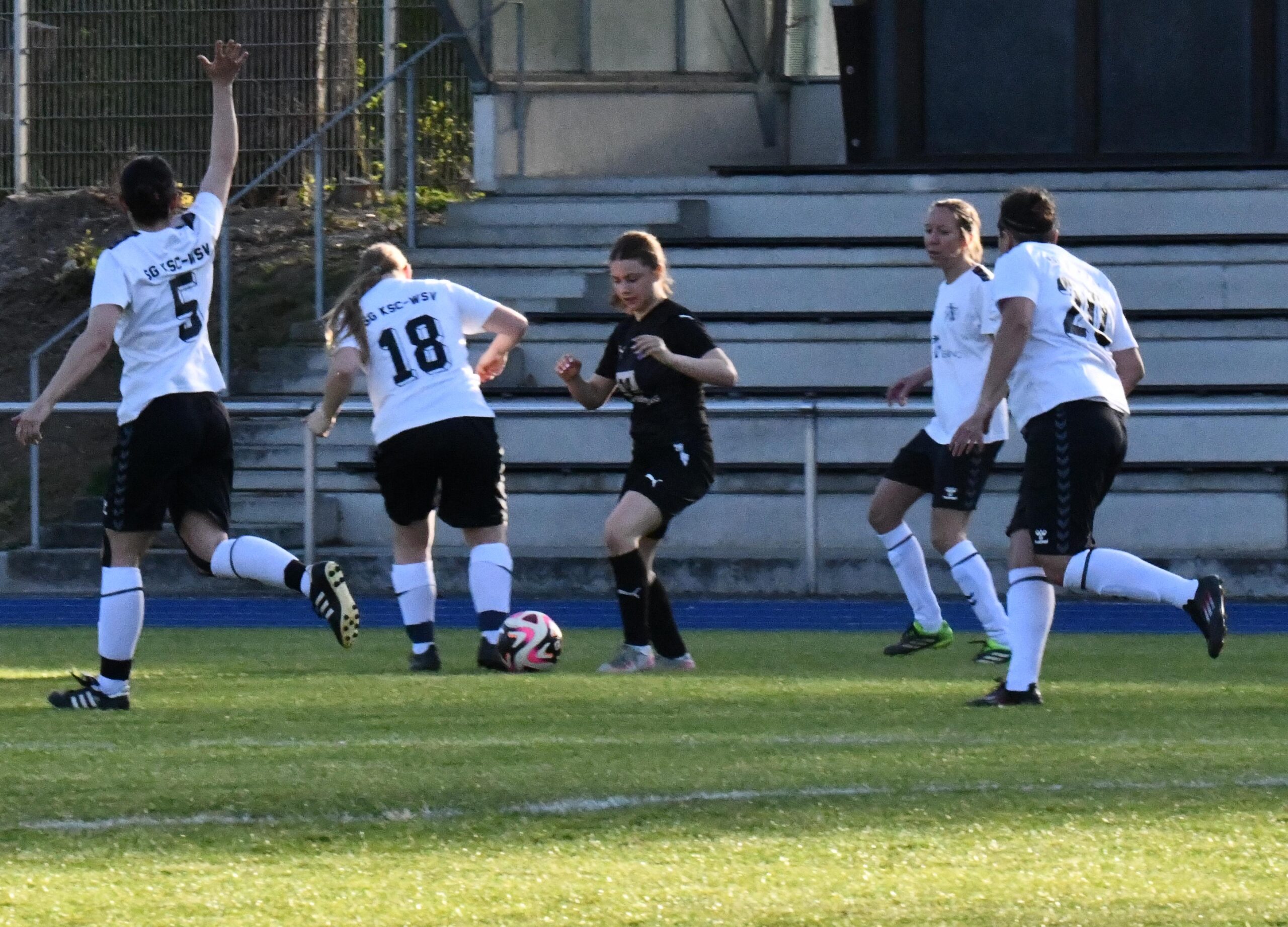 Von Beginn an übernahm die SG das Kommando und versuchte, das Spiel an sich zu reißen. Die Gastgeberinnen standen jedoch kompakt, störten frühzeitig und ließen zunächst kaum klare Abschlüsse zu. Nur einmal wurde es in der Anfangsphase richtig gefährlich: Nach einem Pass ins Zentrum kam eine Gästespielerin freistehend zum Abschluss, doch Marie Grote war hellwach und klärte in höchster Not.