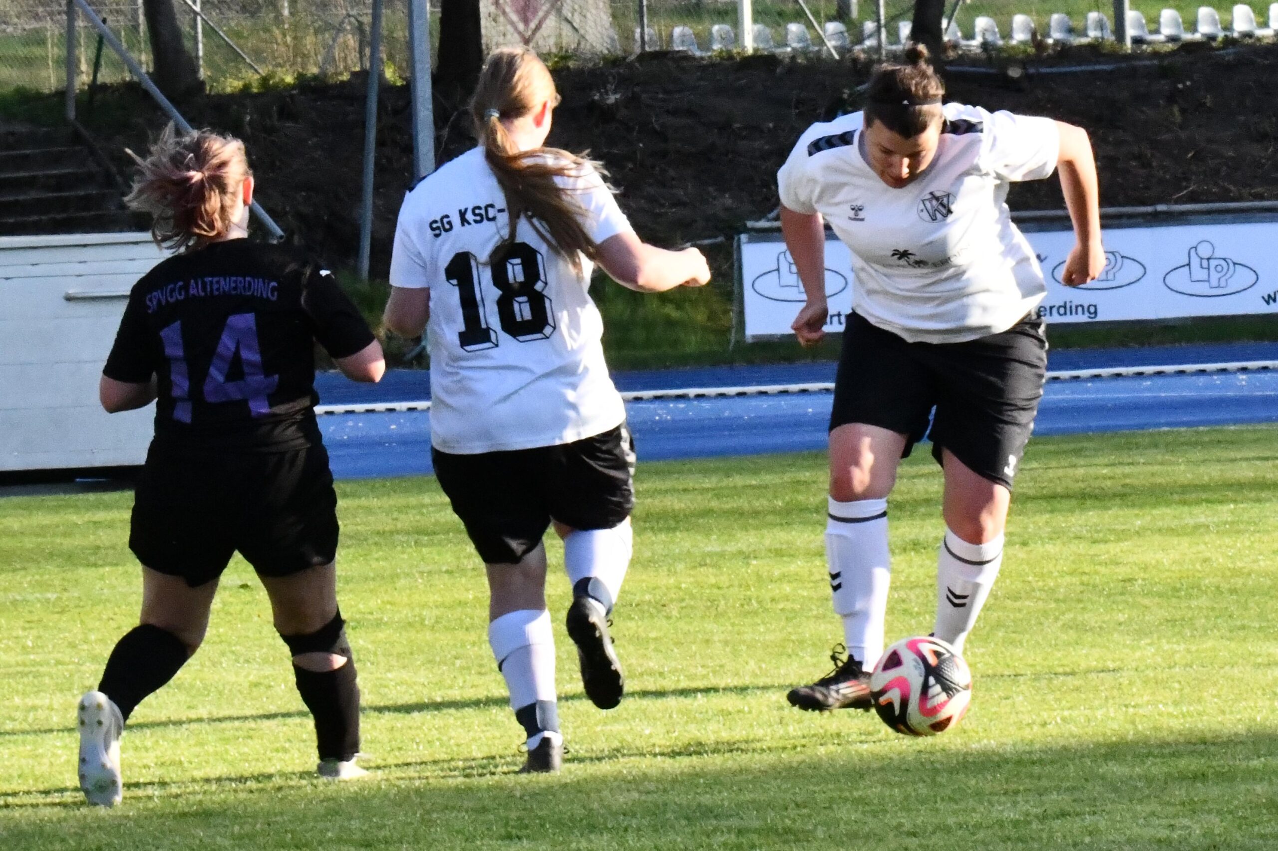 Auch in der Folge blieb die SG gefährlich. In der 55. Minute kam nach einer Hereingabe eine Gästespielerin frei zum Schuss, setzte den Ball jedoch neben das Gehäuse. Danach gelang es Altenerding, das Spiel wieder etwas zu beruhigen und die Gäste zunächst vom eigenen Strafraum fernzuhalten.