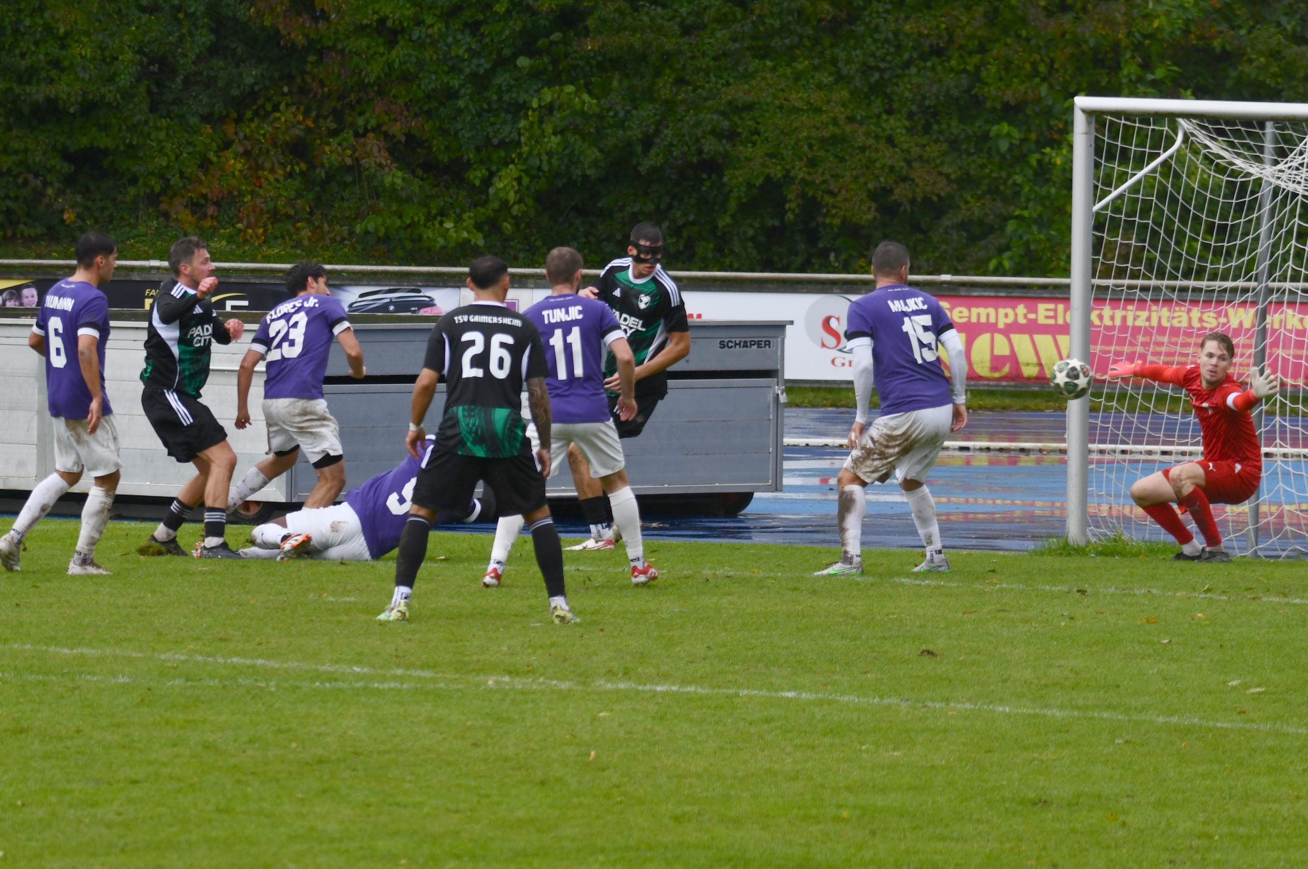 Jedoch gaben sich die Gäste noch nicht geschlagen und wollten das Remis. In der 92. Minute wurde es vor dem Tor der SpVgg gefährlich. Nach einer Hereingabe kam Spielführer Hüttinger am kurzen Pfosten an das Leder, doch stark bedrängt, fand er nicht den exakten Abschluss, sondern schoss am Tor vorbei.