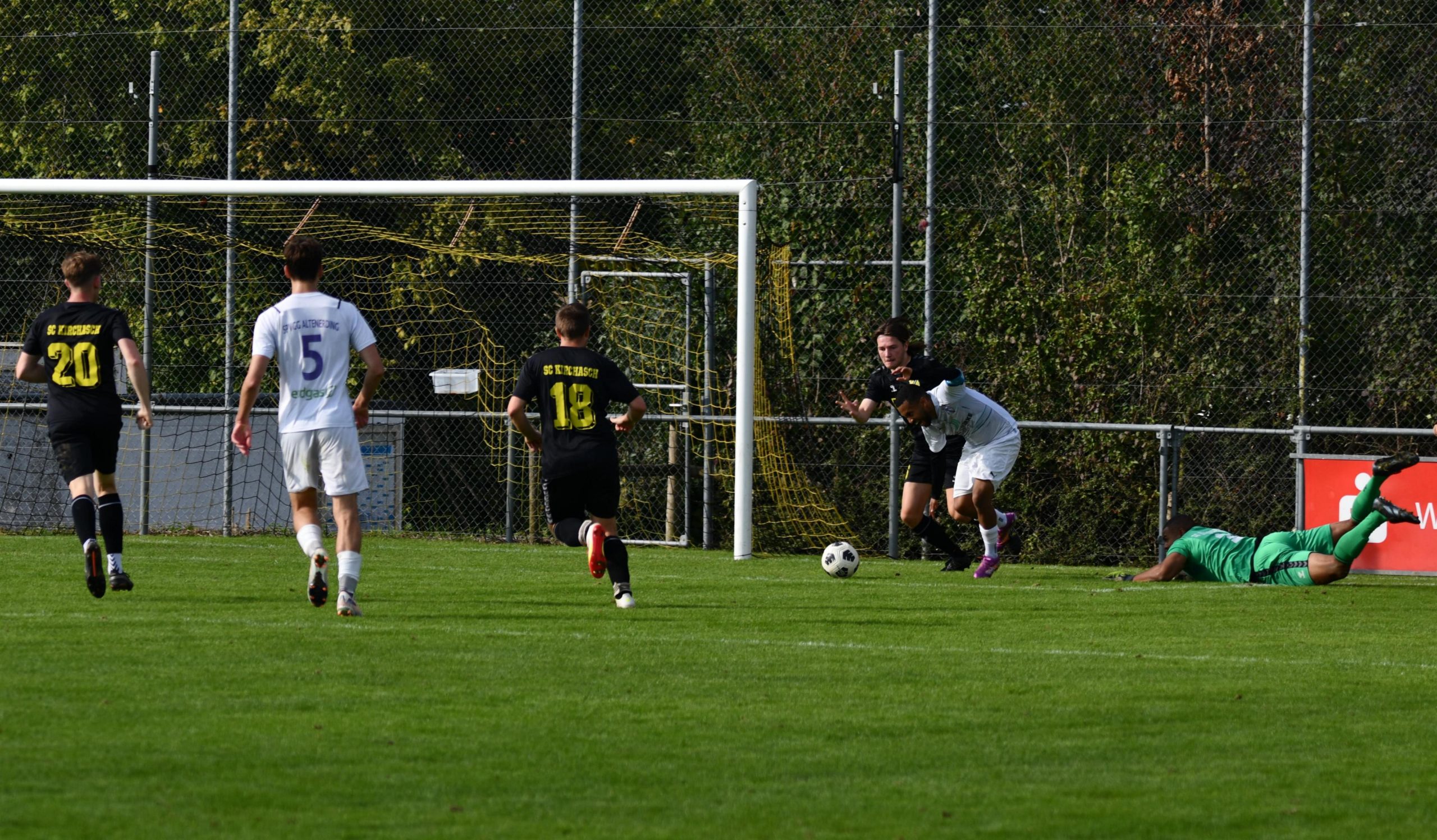 Nach 35 Minuten gab es dann eine äußerst kuriose Szene. Als der abseitsverdächtigt stehende Getnet ein Zuspiel von Lukas Rymas erhielt, eilte er allein auf das Kirchascher Tor zu. Zunächst scheiterte er an Kouame. Allerdings konnte der Keeper den Ball nicht festhalten, so dass Getnet noch eine zweite Chance erhielt und schließlich im zweiten Versuch auf 2:0 stellte.
