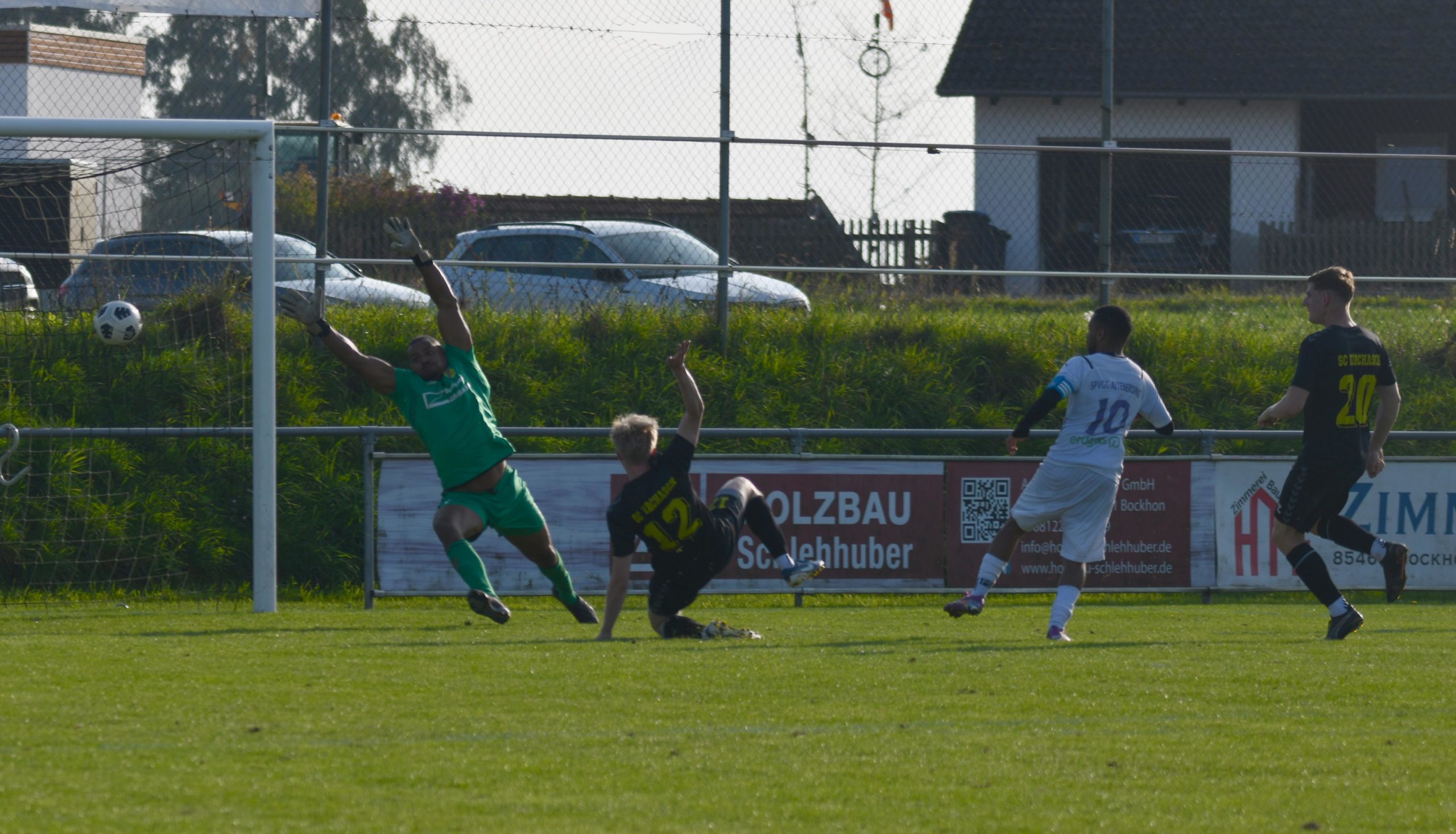 Nur zwei Minuten später war der Keeper schon wieder gefordert. Nach einem Pass in die Tiefe tauchte der Ex-Altenerdinger Jonathan Günzel frei vor dem Tor auf, doch Pamer war rechtzeitig aus dem Tor gekommen, verkürzte den Winkel, und wehrte dann gekonnt ab.