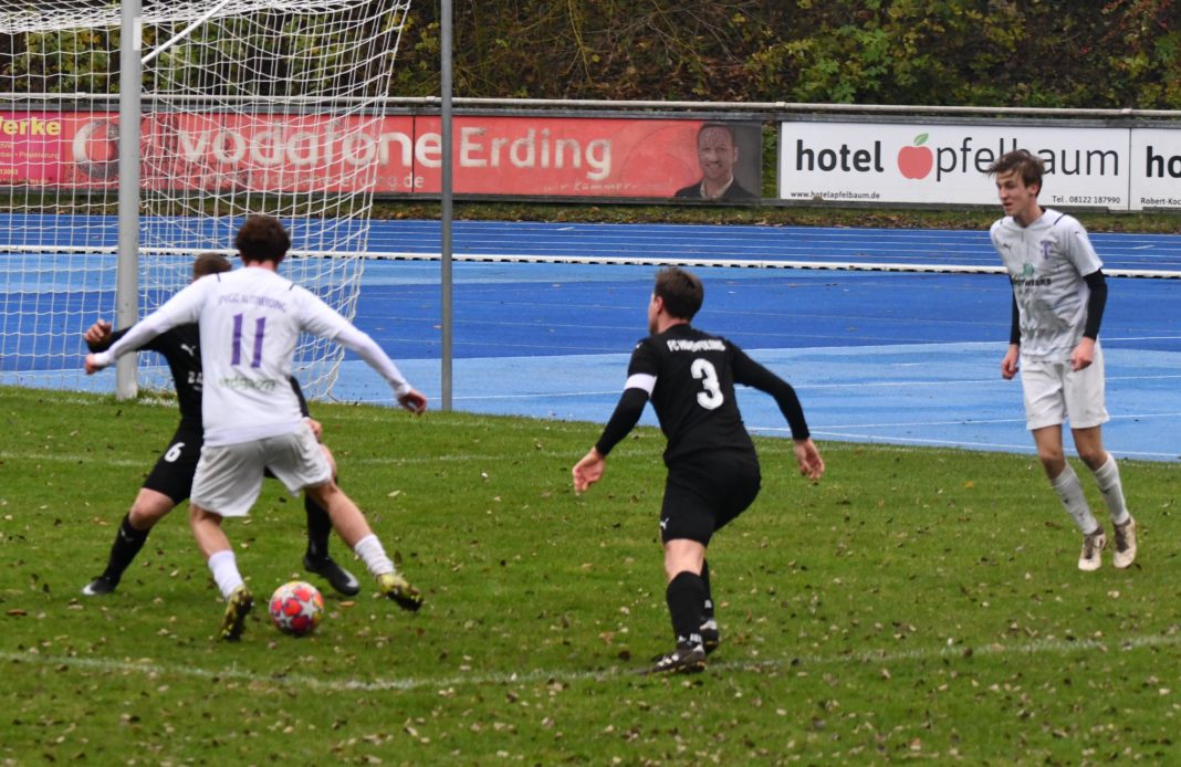 Die zweite Hälfte benötigte keine lange Anlaufzeit, denn schon nach wenigen Sekunden ging der Gast überraschend in Front. Nach einem Ballverlust der Veilchen im Mittelfeld spielten die Hohenpoldinger das Leder sofort in die Tiefe. Als Grichtmaier dann im Strafraum an den Ball kam, brachte er das Leder nach innen. Julian Topf wollte die Hereingabe abwehren, doch die Abwehraktion misslang, denn er brachte das Spielgerät auf das eigene Tor. Zwar war Pamer mit der Hand noch am Ball, konnte aber den Rückstand nicht mehr verhindern.
