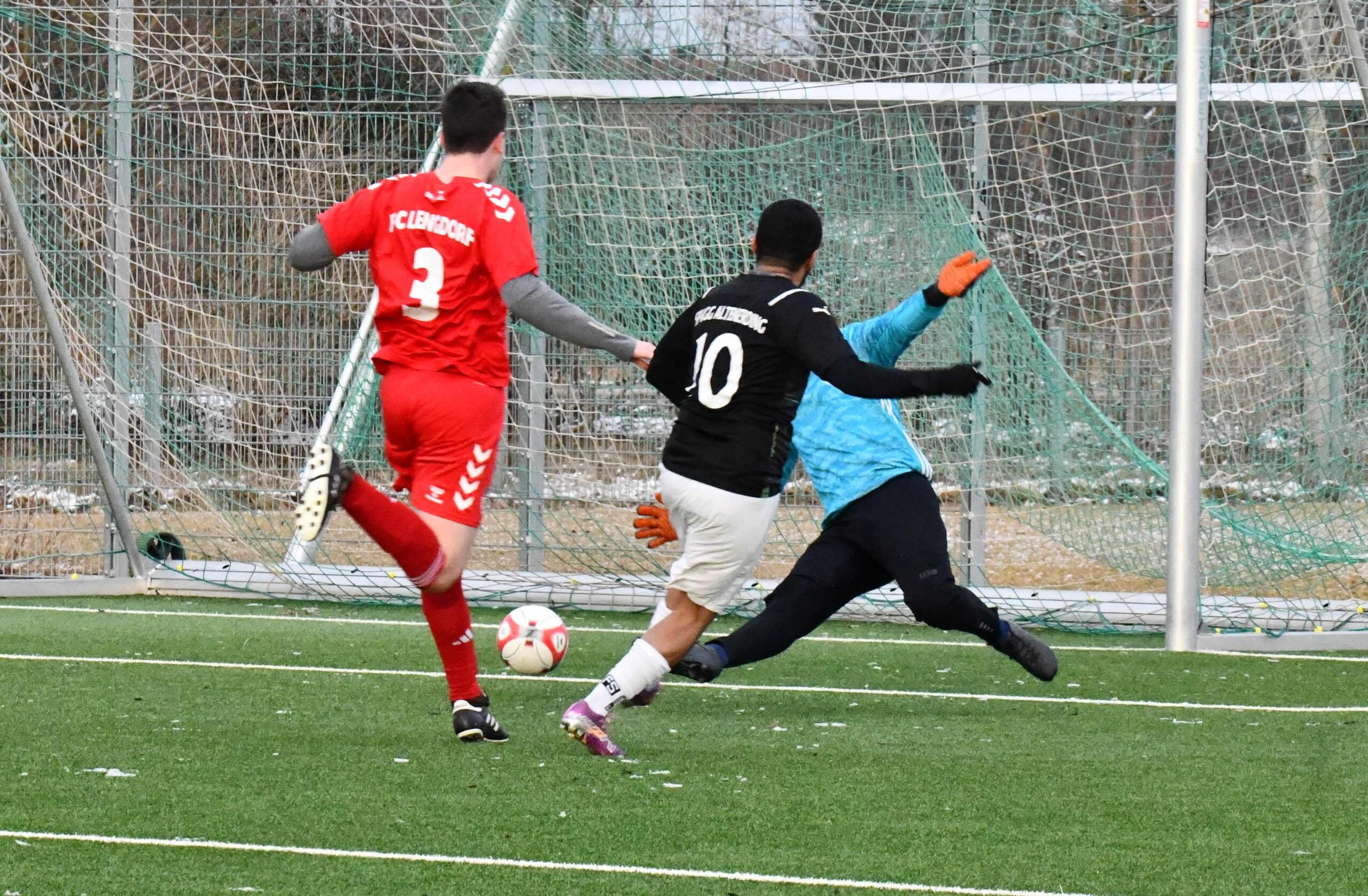 Die letzte Chance in diesem Match lag dann nochmal auf Seiten der Gäste. Nachdem sich Vitus Stangl im Zweikampf gegen Sadam Ibrahim behauptet hatte, kam er frei vor Torhüter Jonas Pamer zum Abschluss, doch der Altenerdinger Schlussmann war trotz der eisigen Temperaturen noch nicht „eingefroren“ und konnte dank einer starken die „Null“ halten.