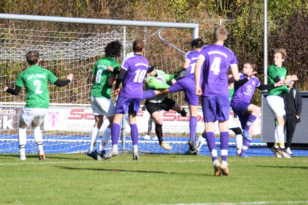 Vier Minuten später wäre dem TSV dann aber fast der Ausgleich gelungen. Nach einem langen Ball aus dem Mittelfeld kam Florian Ammon mit dem Kopf nicht mehr an den Ball, sodass der hinter ihm lauernde Jannik Hupfeld frei vor dem Tor zum Abschluss kam. Jedoch war der Altenerdinger Keeper Valentin Kordick zur Stelle und konnte den Schuss glänzend abwehren.