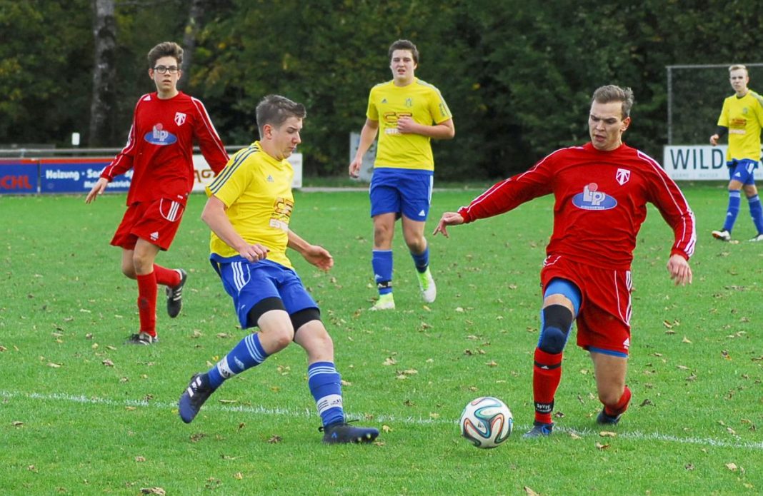 Nicht wiederzukennen waren die A2-Junioren bei ihrem Gastspiel bei der SG Taufkirchen/Mossen gegenüber der Vorwoche, denn nach der beeindruckenden Leistung gegen die JFG Speichersee zeigte man sich nun deutlich schwächer, sodass man den keinesfalls starken Gastgebern beim 0:2 die Punkte leichtfertig überließ. Schon der in Anfangsphase hatte die SG mehr vom Spiel, doch auch auf deren Seite fand der letzte Ball kaum den gewünschten Abnehmer, sodass keine Möglichkeiten vorhanden waren. Erst nach 19 Minuten wurde es gefährlich. Nach einem Angriff über die linke Seite wurde die Kugel flach nach innen gespielt, wo ein Angreifer völlig frei zum Abschluss kam, aber am überragenden Schlussmann Tristan Kaup scheiterte. Drei Minuten später näherten sich die Veilchen auf der Gegenseite erstmals dem Tor, doch Maximilian Hilbig kam nach einer schönen Flanke von Johannes Rüdiger nicht mehr richtig zum Ball, sodass die Kopfballchance ungenutzt blieb. Dann waren wieder die Hausherren an der Reihe, doch eine alleine vor Kaup auftauchender Stürmer scheiterte am abermals überragend reagierenden Altenerdinger Schlussmann. Aber nach 33 Minuten war es dann doch soweit und die Platzherren gingen verdient in Front. Nach einer Flanke erreichte Johannes Glas den Ball nicht mehr per Kopf, sodass der hinter ihm stehende Stürmer aus kurzer Entfernung volley zum 1:0 vollenden konnte und damit die knappe Pausenführung seiner Farben besorgte. 12 Minuten nach Wiederbeginn wäre Altenerding fast der Ausgleich geglückt, denn nach einem schönen Pass von Felix Reiser tauchte Christoph Harke plötzlich alleine vor dem Tor auf, doch der Keeper der Gastgeber konnte retten. Auf der Gegenseite tauchte dann wenig später ein Taufkirchner Akteur alleine vor dem Kasten auf, doch er vergab kläglich und verfehlte das Ziel deutlich. Nun kam die SpVgg besser ins Spiel und man erarbeitete sich ein optisches Übergewicht. Aufgrund zahlreicher Fehlpässe konnte man daraus jedoch kein Kapital schlagen, denn man kam nur selten zum Abschluss. In der 76. Minute hofften die Gäste dann auf den Ausgleich, denn nach einem Foul an Christian Wünsch, der zusammen mit Maxi Stetter in der Defensive einen starken Eindruck hinterließ, bekam die SpVgg 18 Meter vor dem Tor einen Freistoß zugesprochen, doch Markus Weissacher beförderte die Kugel leider in die zweite Etage. Neun Minuten vor dem Ende klingelte es dafür auf der anderen Seite, wobei dieser Treffer unglücklich zu Stande kam. Weissacher konnte auf der linken Abwehrseite klären, schoss dabei seinen Gegenspieler an und die Kugel senkte sich über Glas hinweg genau in den Lauf eines Angreifers, der dann mit einem unhaltbaren Flachschuss ins linke Eck auf 2:0 stellte. Vielleicht wären die Semptstädter noch einmal in die Partie zurückgekommen, doch auch in der Offensive fehlte das nötige Glück. Nach einem Ballverlust der Hausherren liefen die Altenerdinger in Überzahl auf das Tor und als Tilman Wirth im Strafraum zum Schuss kam, hoffte man auf den Anschluss. Jedoch konnte der Keeper mit einem Reflex abwehren und hatte dann noch das Glück des Tüchtigen, dass die Kugel an die Latte prallte, sodass die Niederlage aus Altenerdinger Sicht nicht mehr zu vermeiden war.